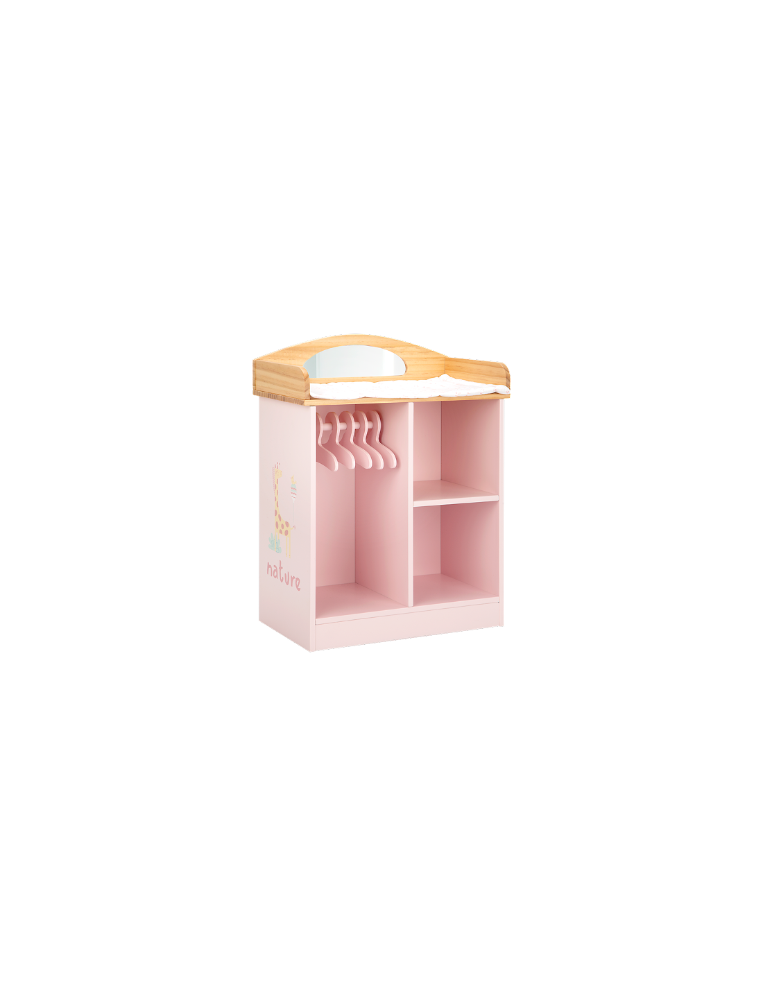 Pay by Humm UKCombine style and utility with the Nature Coat Rack / Changing Table, a versatile 2-in-1 piece measuring 37 x 20 x 48 cm. This wooden nursery station features a comfortable changing surface on top and a functional coat rack with a hanging rail below. Complete with 5 wooden hangers, it’s the perfect all-in-one spot for dressing and caring for dolls up to 45 cm.