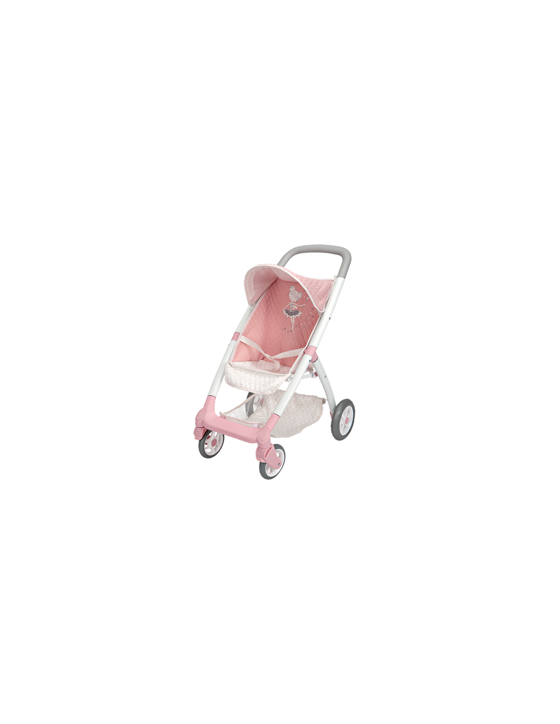 The Universe Stroller is an essential accessory for any young doll collector who loves realistic roleplay. With a fixed handle height of 63 cm, it offers an ergonomic and stable experience for preschool and early elementary-aged children. This model stands out with its exclusive Universe Collection aesthetic: a deep navy blue fabric adorned with a shimmering metallic silver pattern that brings the magic of the night sky to every playtime walk. Built with a sturdy yet lightweight metal frame, this stroller is easy for children to maneuver around the house or at the park. It features a three-point safety harness to keep dolls (up to 45 cm) securely seated, even on bumpy paths. For added convenience, the stroller includes a spacious lower storage basket for carrying accessories and a multi-position folding hood. When the day's adventure is over, the stroller folds down compactly for effortless storage. Designed in Spain, this stroller encourages the development of nurturing skills, social interaction, and motor coordination.