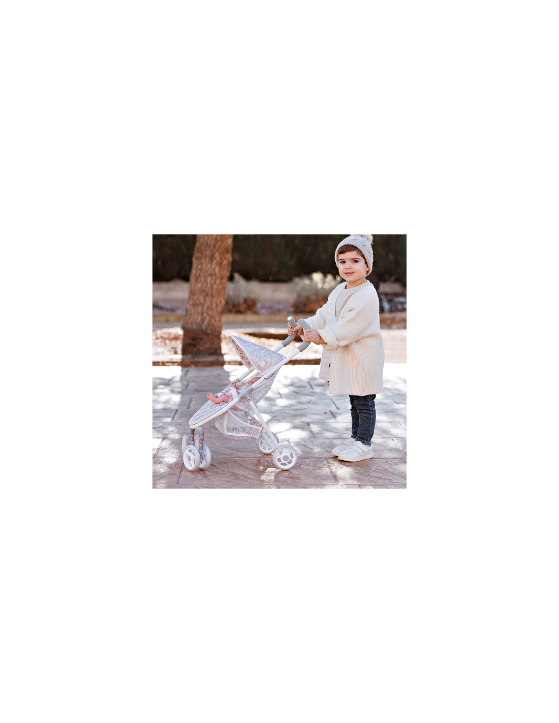 The Fantasy Pushchair is designed to inspire imagination and nurturing play in young children. With a comfortable 62 cm handlebar height, this model provides the perfect ergonomic fit for preschool-aged "parents." Part of the enchanting Fantasy Collection, it features a premium pink fabric adorned with a soft white pattern of stars, clouds, and moons, creating a magical look that stands out in any playroom. Built with a high-quality, durable metal frame, this pushchair is incredibly lightweight and easy to handle, even for the youngest walkers. It includes a built-in safety harness to keep dolls (up to 45 cm) securely in place during a stroll and double front wheels for enhanced stability and smooth steering. When the outing is over, the stroller folds down easily for compact storage. Designed in Spain with meticulous attention to detail, this accessory helps develop empathy, social responsibility, and motor coordination through realistic roleplay.