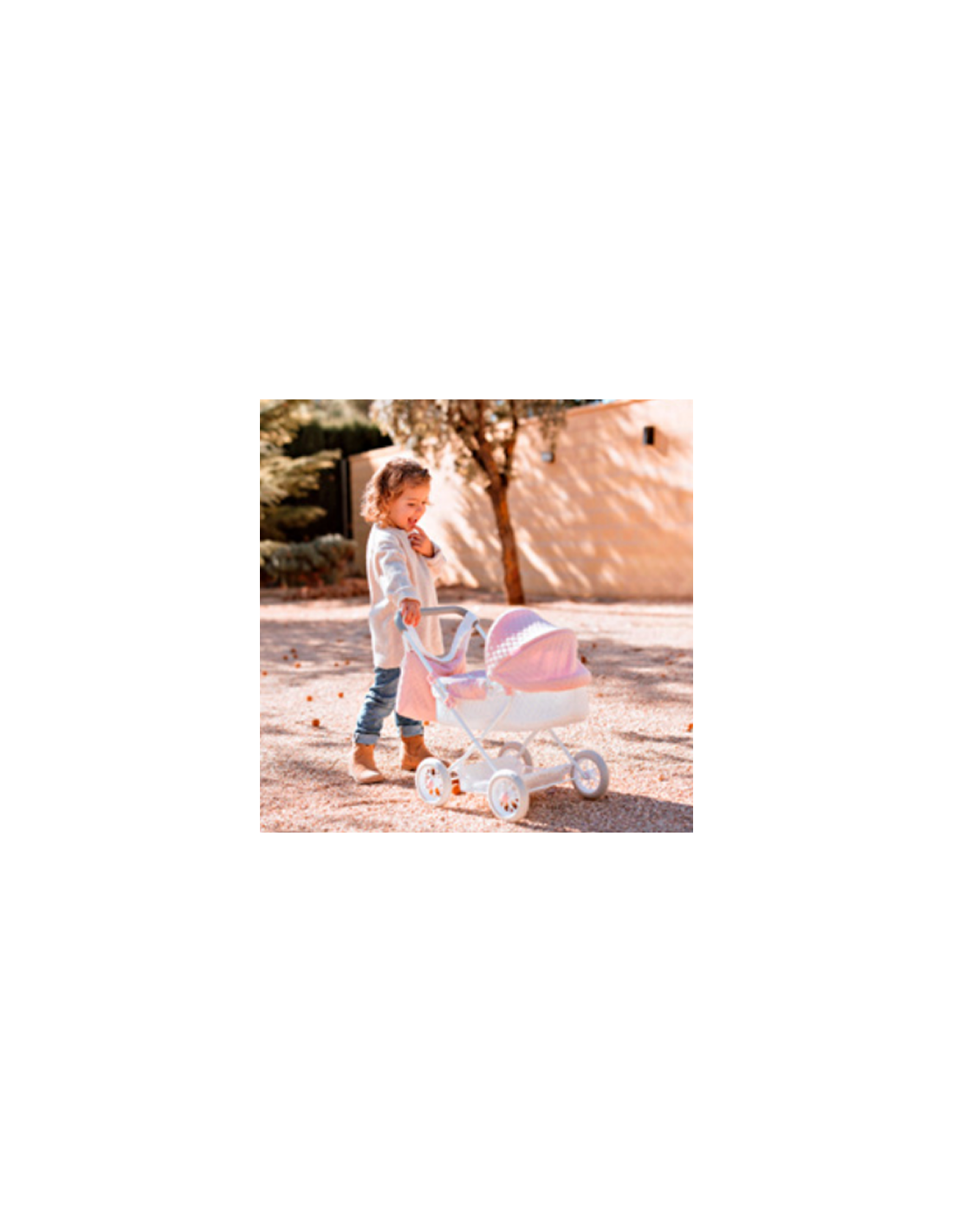 The Universe Pram is designed to provide younger children with a realistic and stylish "parenting" experience. With a handle height of 55 cm, this model is specifically tailored for children aged 2 to 5 years, ensuring an ergonomic and easy-to-push walk. The pram is part of the exclusive Universe Collection, featuring a high-quality navy blue fabric decorated with a delicate metallic silver pattern that shines like the night sky. Despite its compact size, this pram offers premium features, including a folding hood that allows children to easily place their dolls inside and a coordinated apron to keep them snug. The set includes a matching shoulder bag that attaches to the handlebar, perfect for carrying small accessories or "diaper" essentials. Built with a sturdy metal frame and smooth-rolling wheels, this pram is both durable and lightweight. Like all Muñecas Arias products, it is designed in Spain to foster imagination, empathy, and the development of motor skills through play.