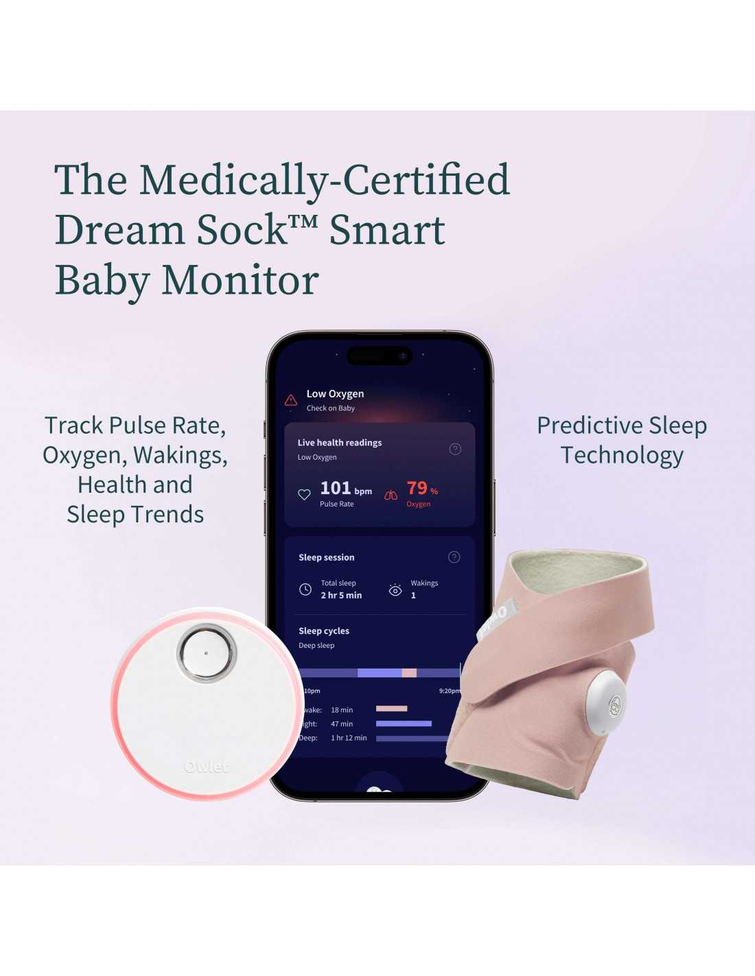 - Unlike many monitoring systems, the Owlet Dream Sock™ offers all its advanced features with no subscription fees.