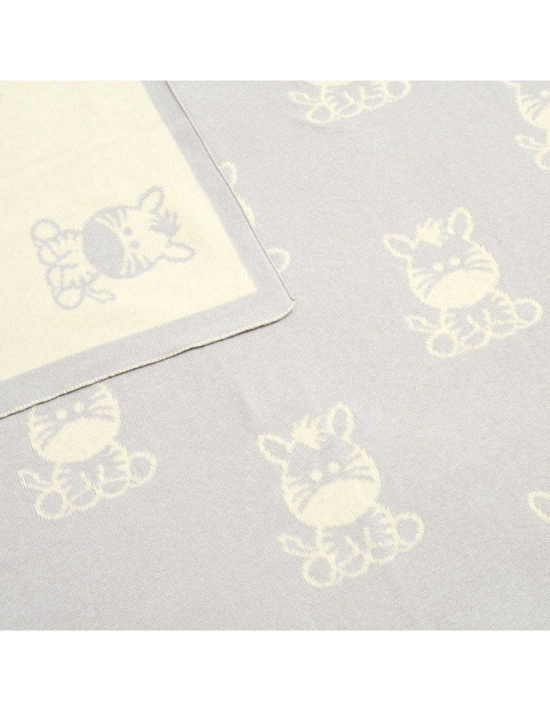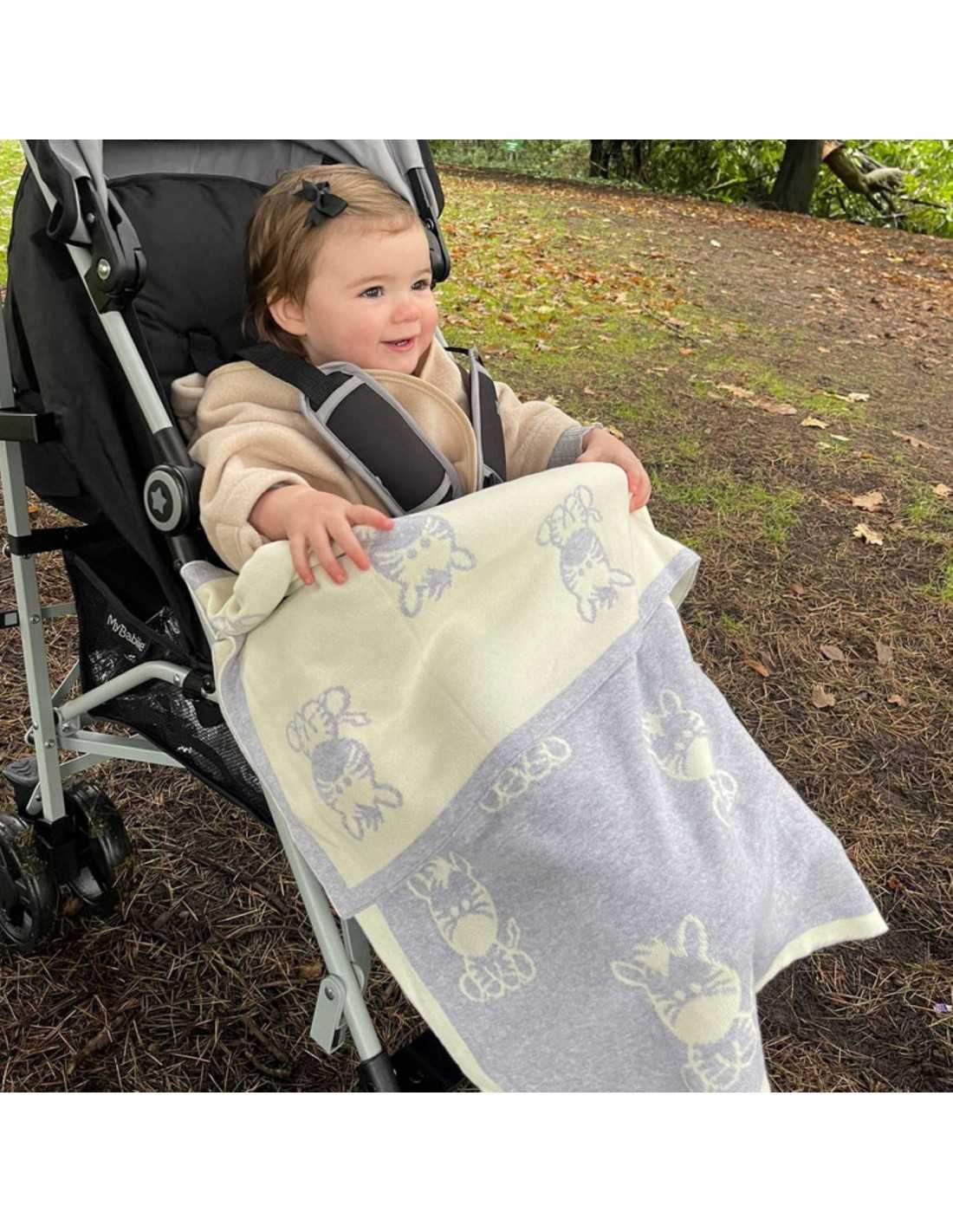 Our stunning knitted blanket will grow with little ones, from baby to toddler and beyond. It is a beautiful addition to your little one's nursery that promises both comfort and charm.Adorable Zebra Design: Adorned with an adorable zebra character, this knitted blanket adds a touch of whimsy and playfulness to your baby's space. The charming design captivates the imagination and brings a delightful safari-inspired vibe to the nursery.Soft-touch Cotton Comfort: Crafted from fine gauge combed cotton, this blanket offers a luxurious softness that's gentle on delicate skin.Versatile Reversible Design: This blanket offers two looks in one. The grey/cream colour scheme ensures it seamlessly complements any nursery décor while offering flexibility in style. Matching Safari Pieces Available: Pair this exquisite knitted blanket with other matching safari-themed nursery pieces from our range for a coordinated and cohesive look.