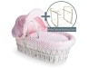 Clair de Lune Dimple White Wicker Moses Basket+Rocking Stand-Pink