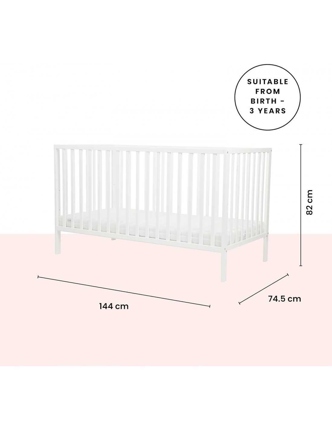 - Full-sized cot with co-ordinating changing & storage accessories (sold separately).