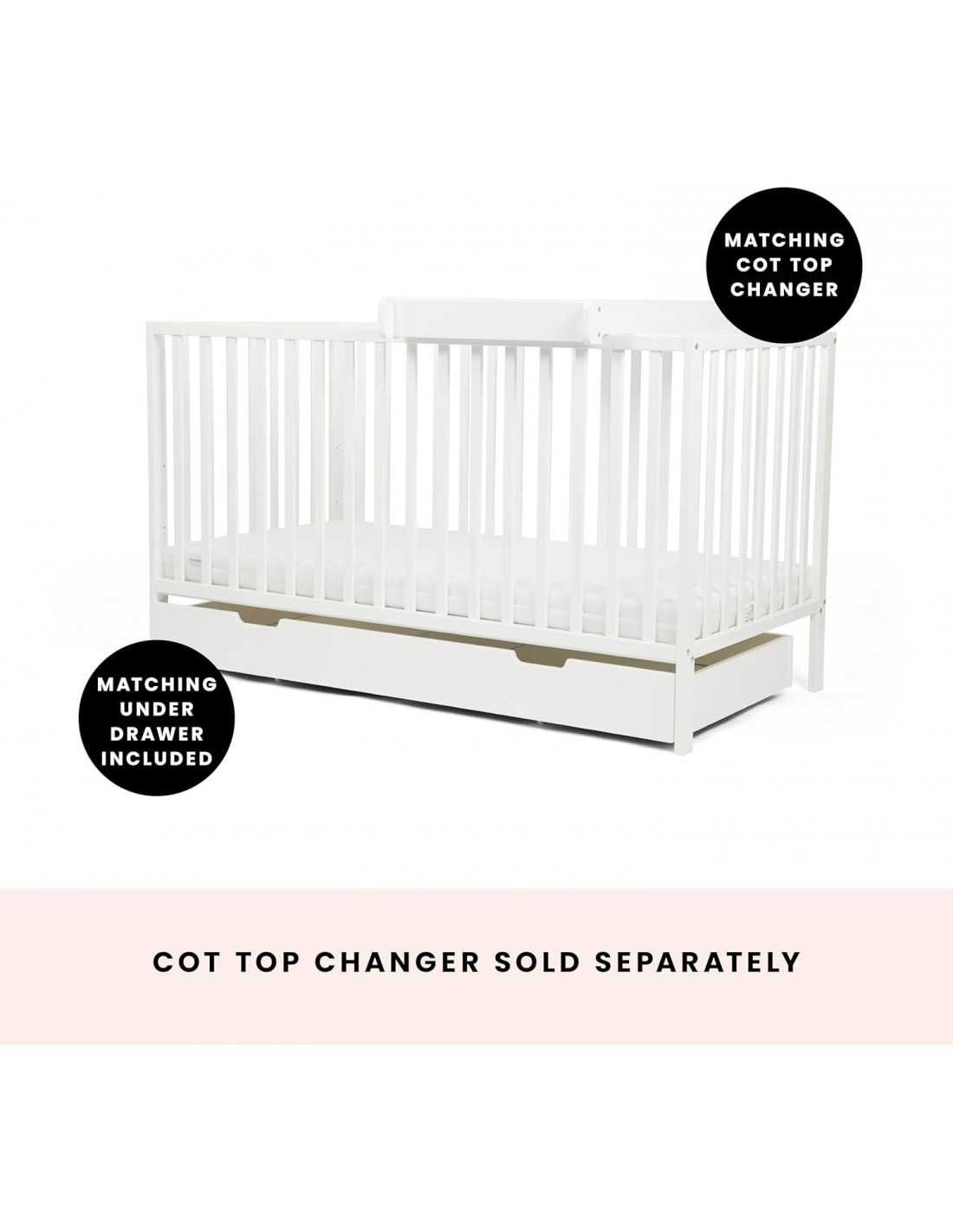 - Full-sized cot with co-ordinating changing & storage accessories (sold separately).