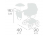 - Approximate dimensions of the doll car: 90 cm high to the handlebars, 40 cm wide and 90 cm long.