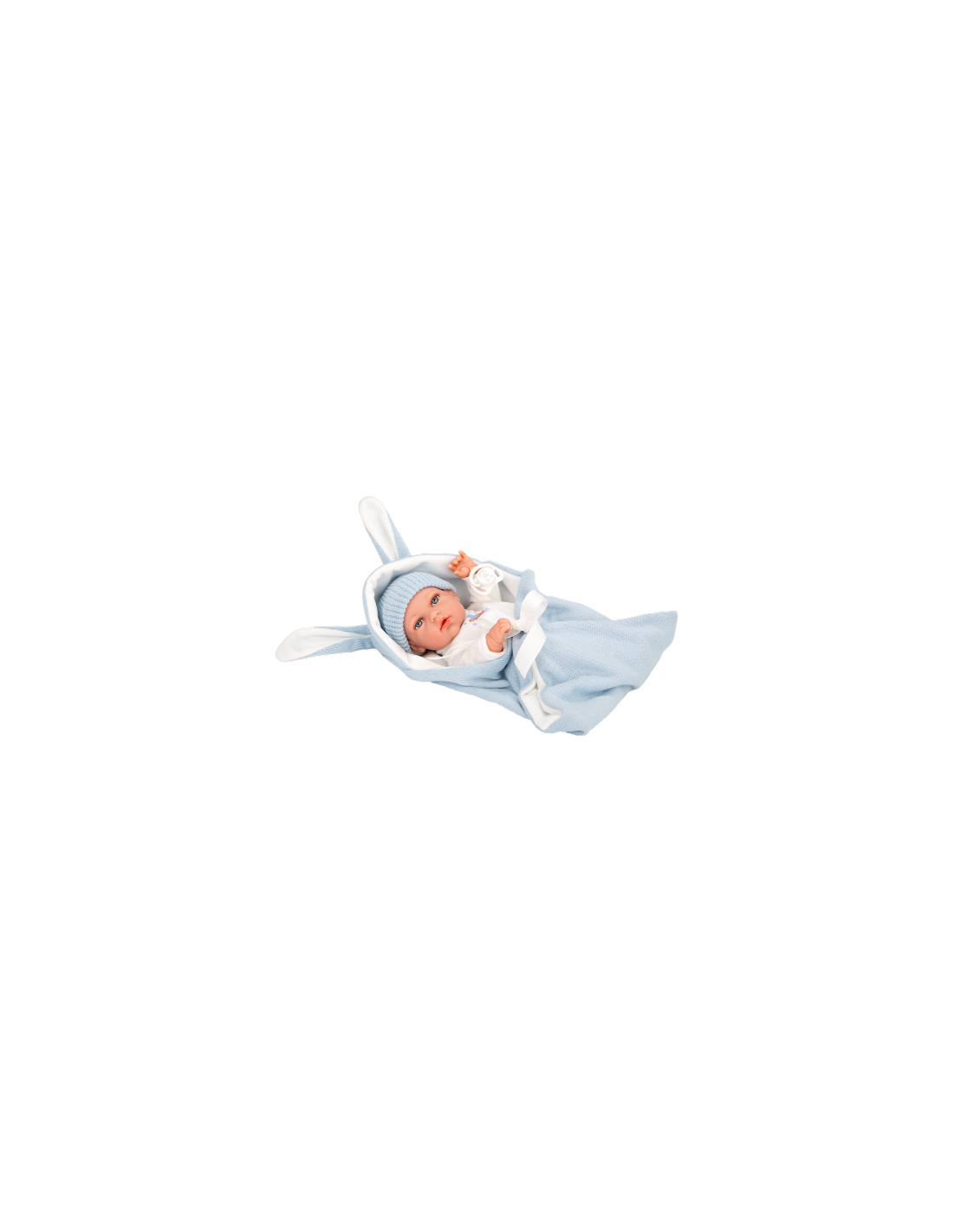 The Elegance Natal Blue doll is designed to offer a realistic and engaging play experience for young children. Measuring 30 cm, this doll is entirely made of high-quality, soft-touch vinyl and is anatomically correct, providing an authentic look and feel. His skin features delicate details like gentle baby folds and a natural, healthy glow. Natal arrives dressed in a sophisticated blue knit outfit, complete with a matching bonnet. To add to the fun, he comes with a premium, plush sleeping bag (saco), allowing children to practice "bedtime" routines or keep their baby warm on the go. Like all authentic Muñecas Arias creations, he is lightly infused with a pleasant vanilla scent. Hand-manufactured in Castalla, Spain, Natal Blue comes in an elegant window display box, making him a wonderful first doll or a special gift for any occasion.