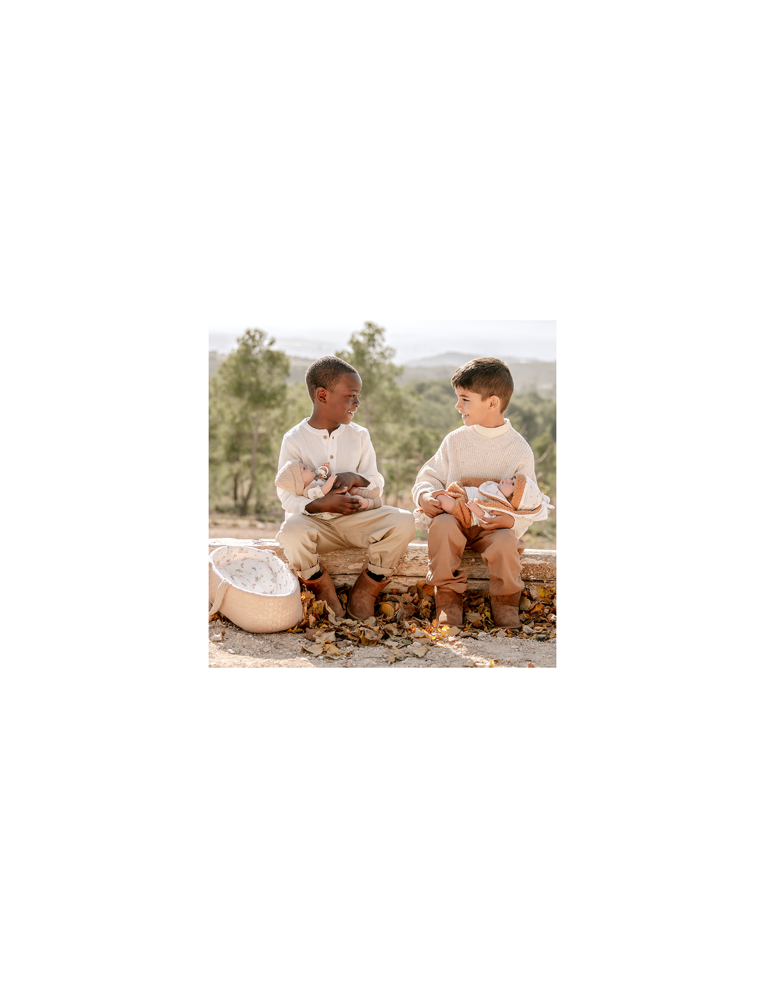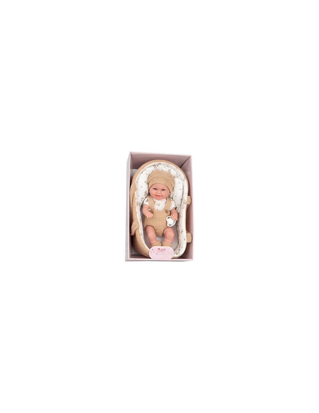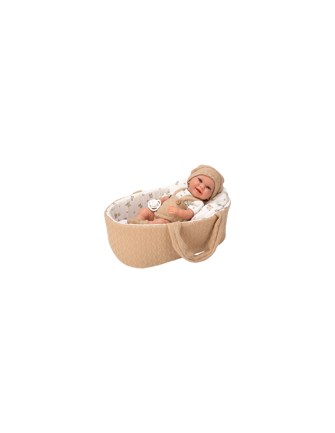 The Elegance Babyto Brown is designed to capture the hearts of young nurturers with its classic design and realistic details. Measuring 33 cm, this doll is entirely made of premium soft-touch vinyl and is anatomically correct, offering an authentic look and feel. His face is meticulously detailed with bright eyes and gentle baby features that inspire imaginative play. Babyto arrives dressed in a sophisticated brown-and-cream ensemble, featuring a matching bonnet and booties made from high-quality Spanish textiles. To enhance the "on-the-go" play experience, the set includes a plush, coordinated carrycot (capazo) with sturdy handles. This allows children to practice putting their baby to sleep and safely transporting him from room to room. Like all authentic Muñecas Arias dolls, he is manufactured in Castalla, Spain, and carries the signature light vanilla scent. The set is presented in a beautiful window display box, making it an ideal gift for toddlers and young collectors.