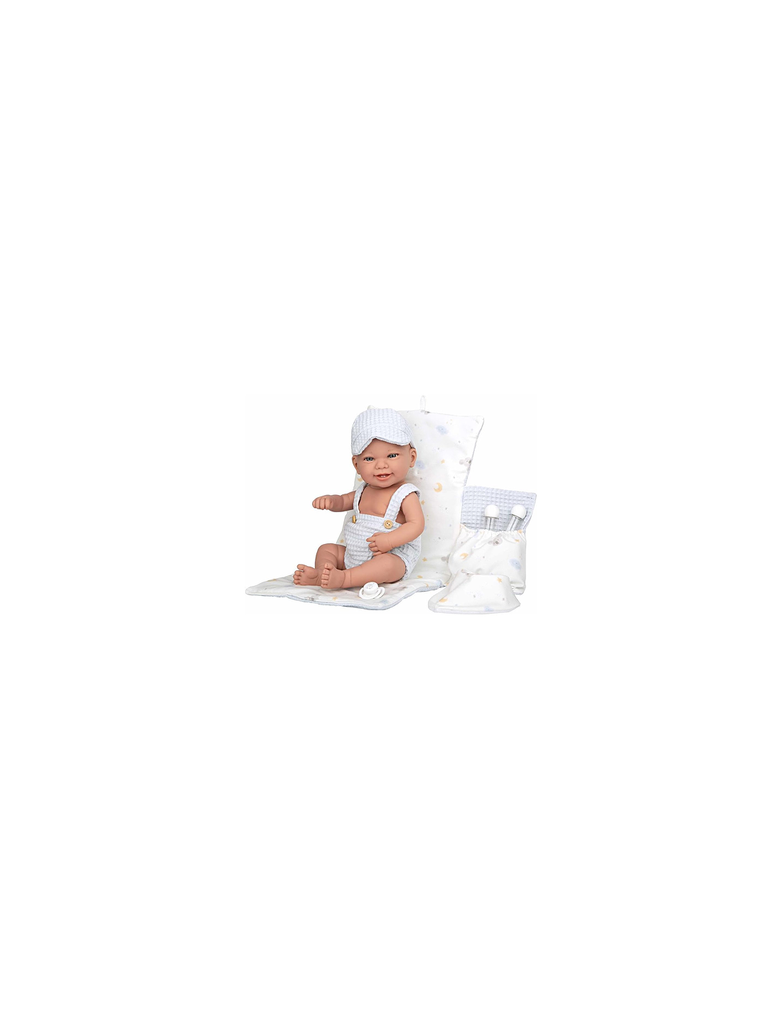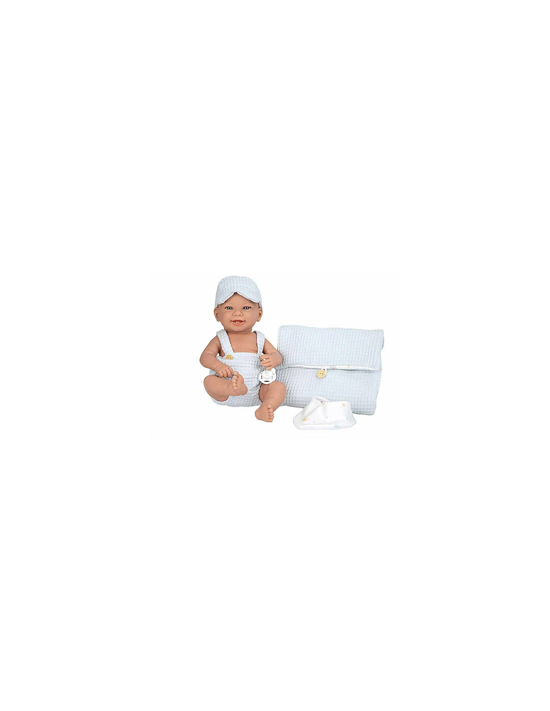 Pay by Humm UKMeet Zoe Blue, a handsome 42 cm full vinyl doll from the Muñecas Arias Elegance collection. This anatomically correct baby boy is handcrafted in Spain with high-quality vinyl and features a sweet, realistic expression. Complete with a matching changing mat and bib, Zoe Blue is the perfect companion for children to enjoy realistic nurturing and daily care play.