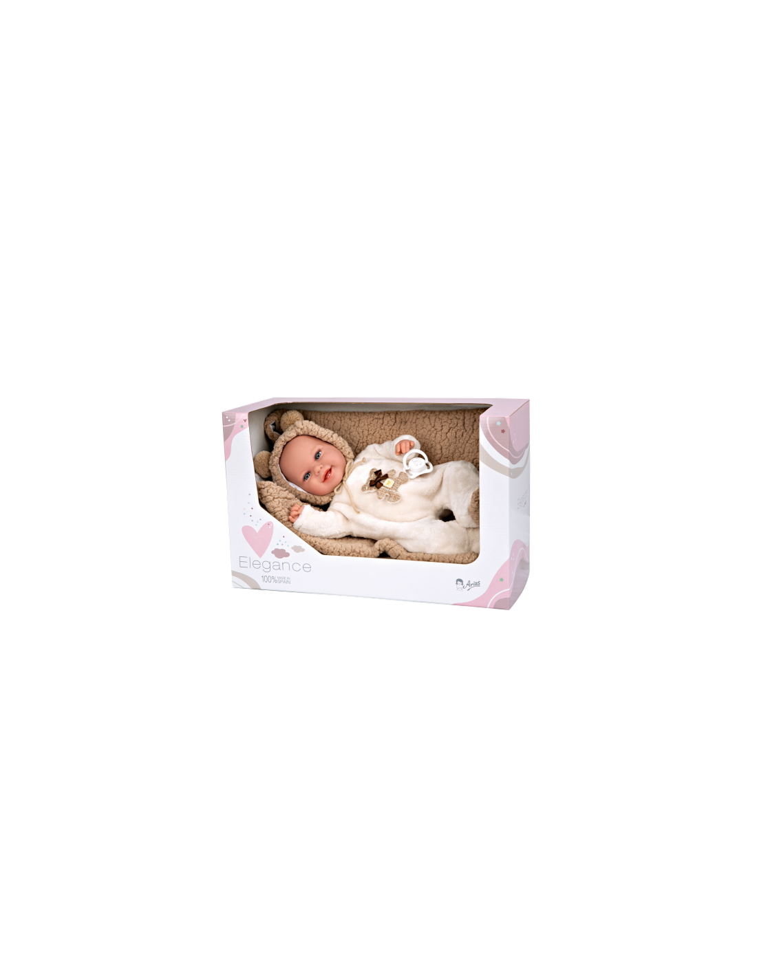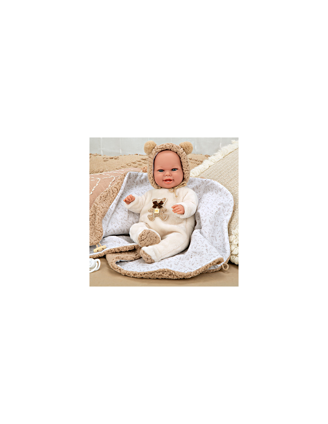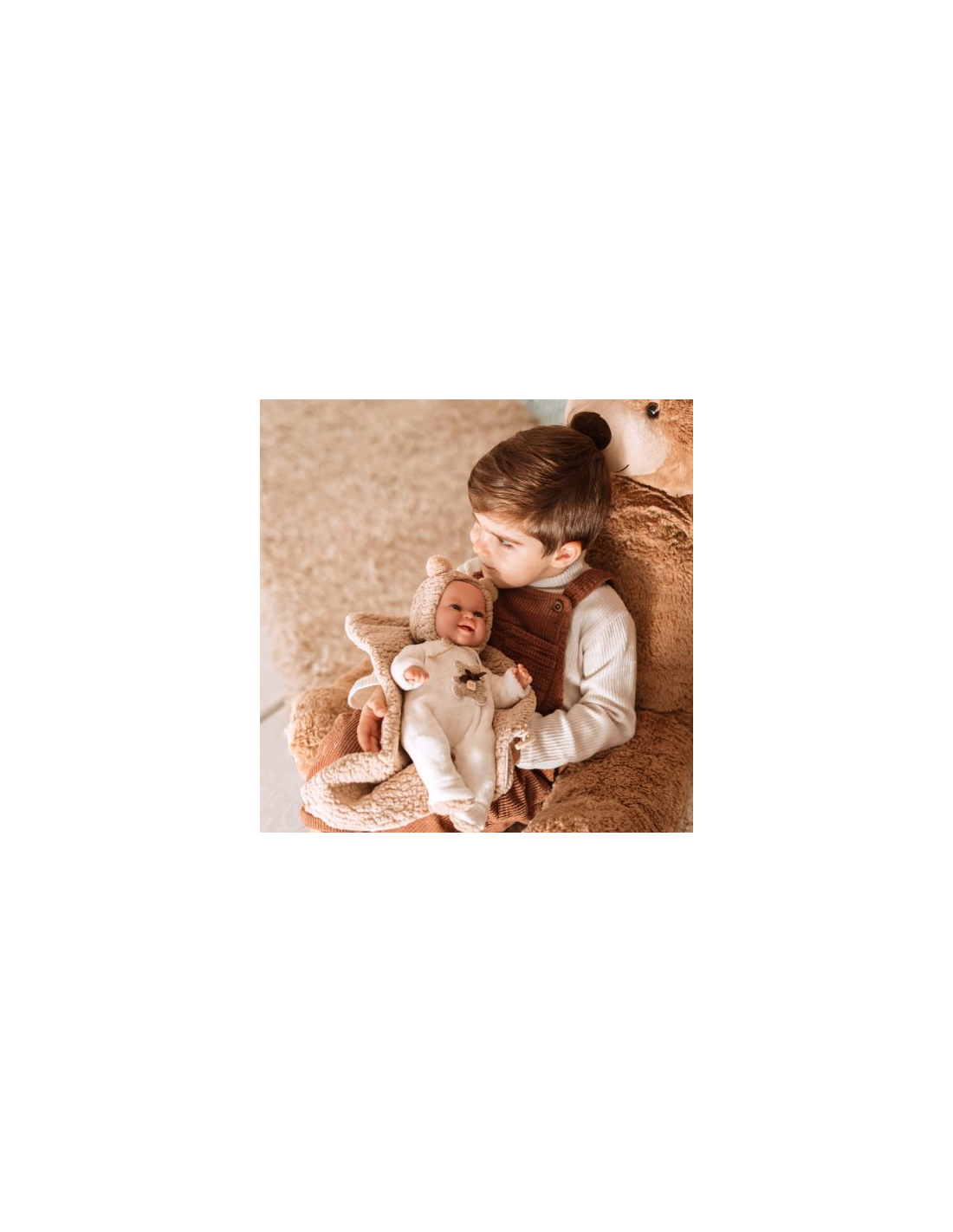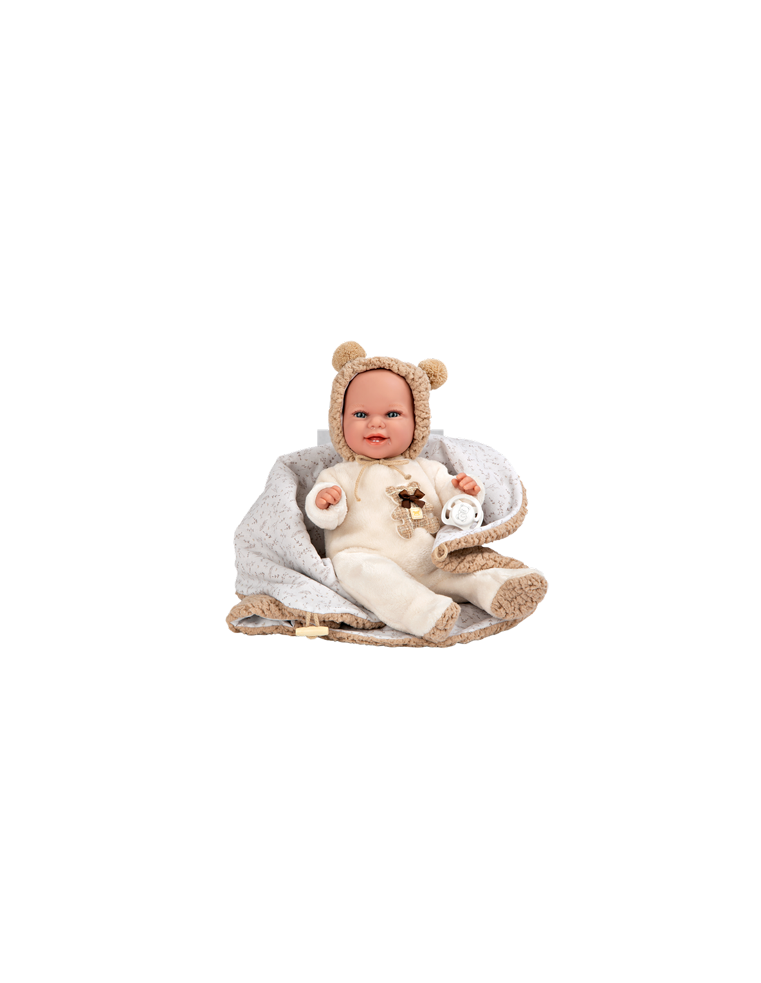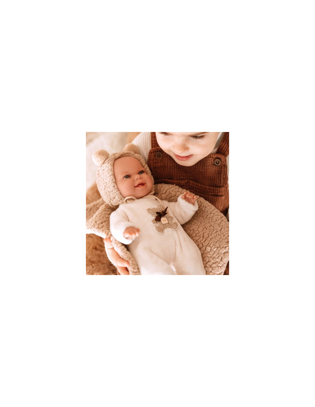 Pay by Humm UKELEGANCE 35 CM BABYTO doll dressed in one-piece pyjamas and a teddy bear hat with matching blanket. Its weight is so realistic that it feels like a real baby. Includes dummy.