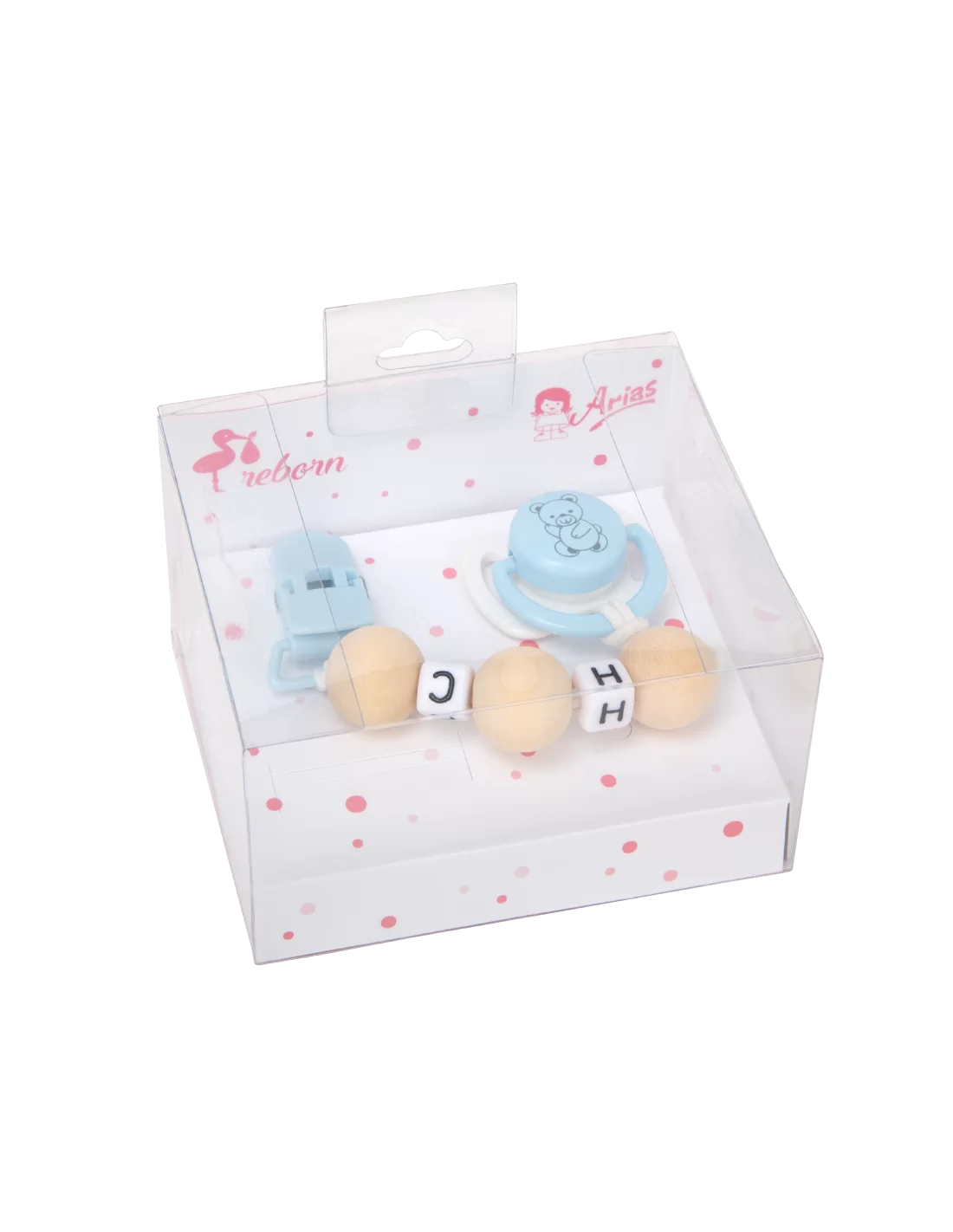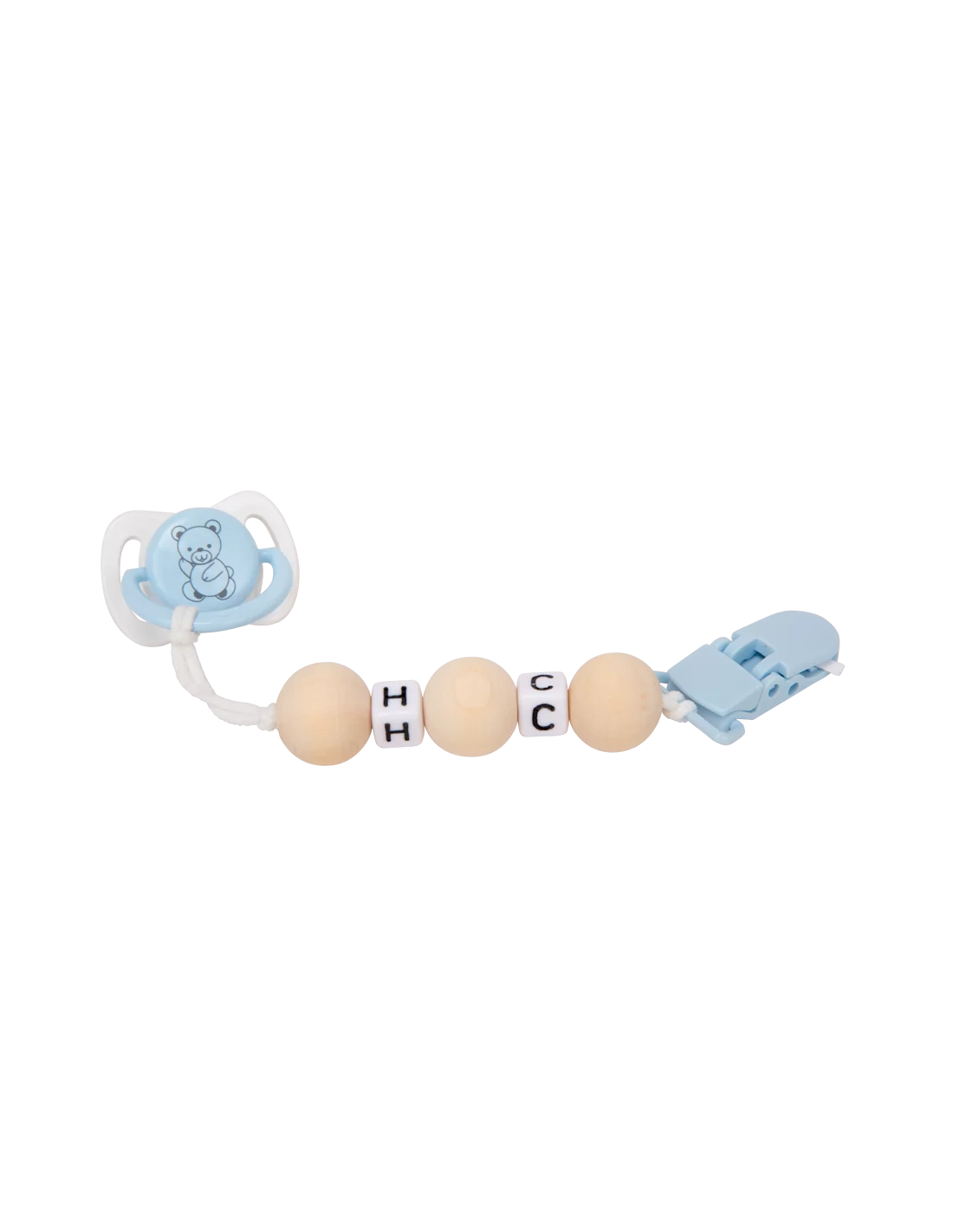 Blue And White Dummy With A Wooden Balls Dummy Chain And White Clip.