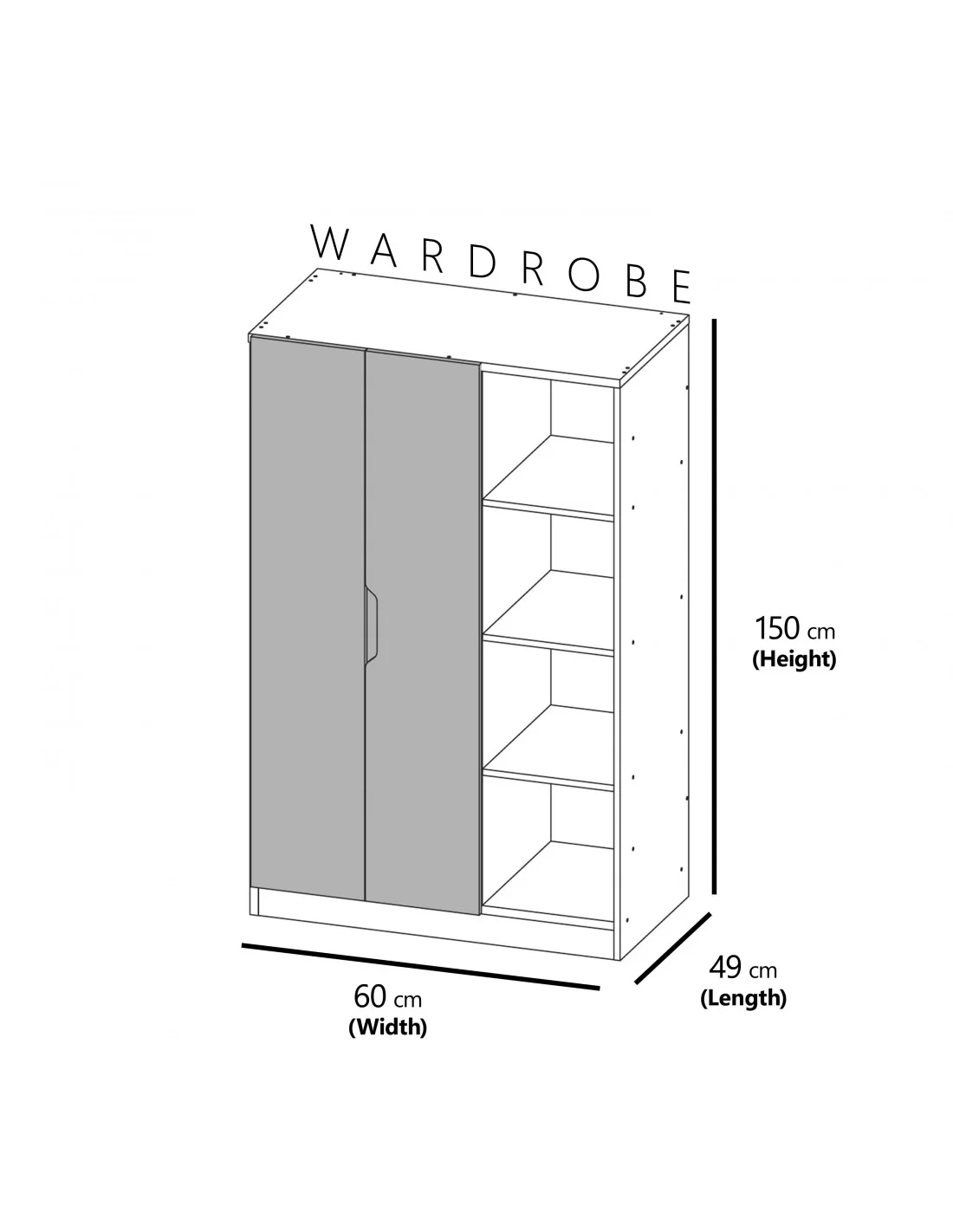 - Wardrobe Dimensions: H.150xW.60xL.49cm