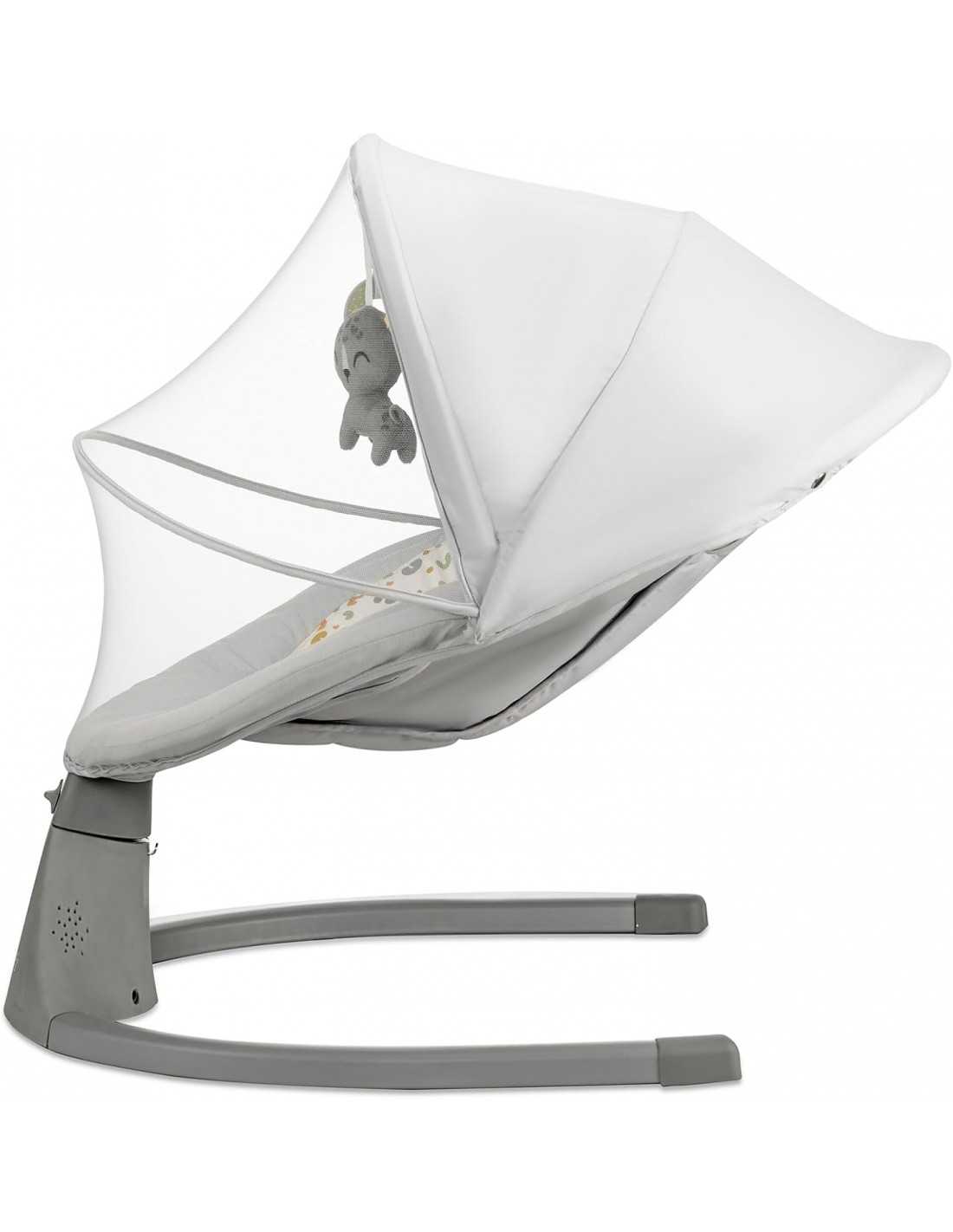 LUMI 2 provides technological support for parenting – you can connect it to a power socket or use batteries for cordless operation. It features a convenient control panel, which you can use to set the rocking speed (five speeds), choose one of 12 melodies, or set the timer (8, 15 or 30 minutes). It also has a practical remote control, thanks to which you can control the rocker. LUMI 2 also comes with a sun shade with two toys, and a mosquito net for when you want to relax with your little one outdoors.