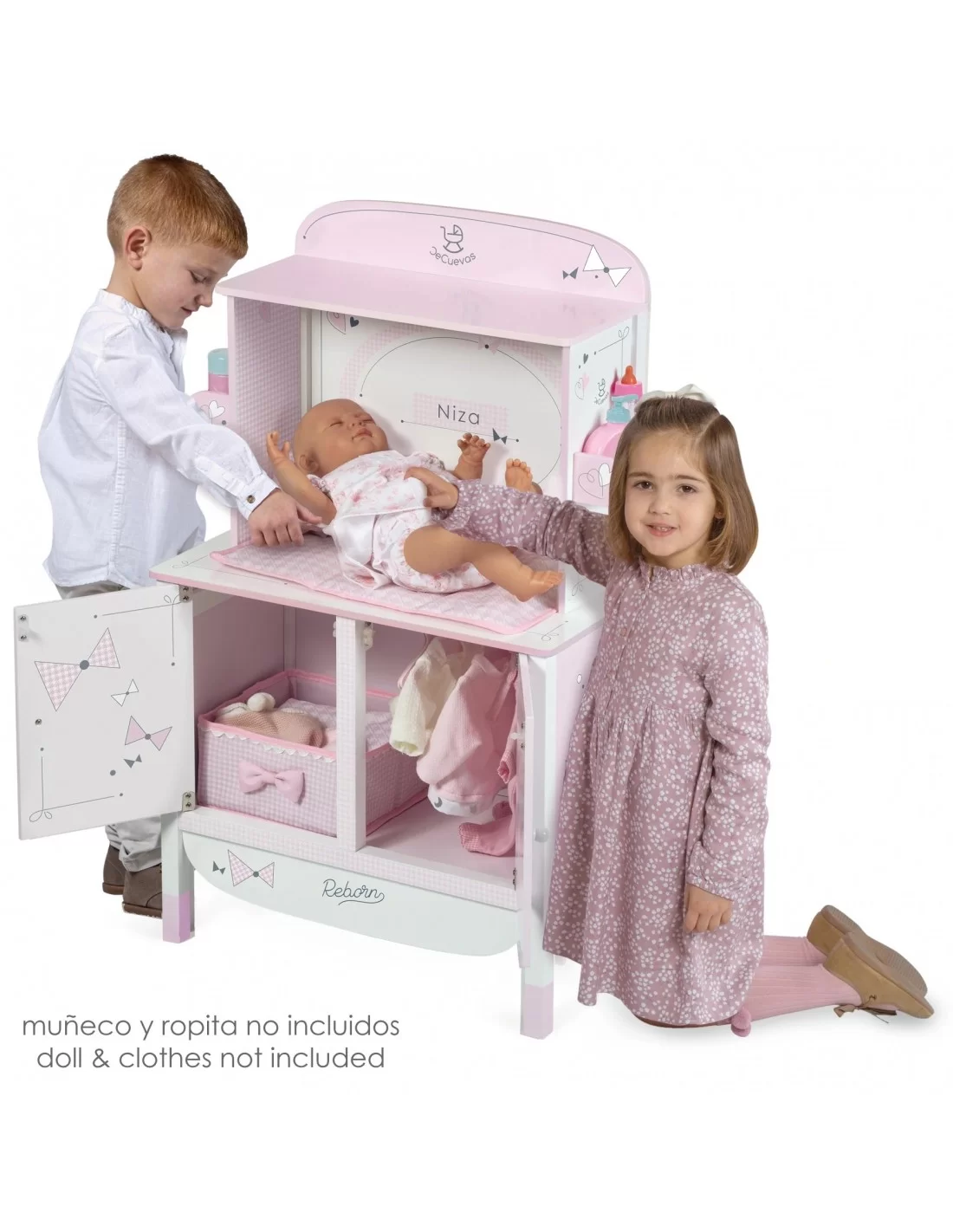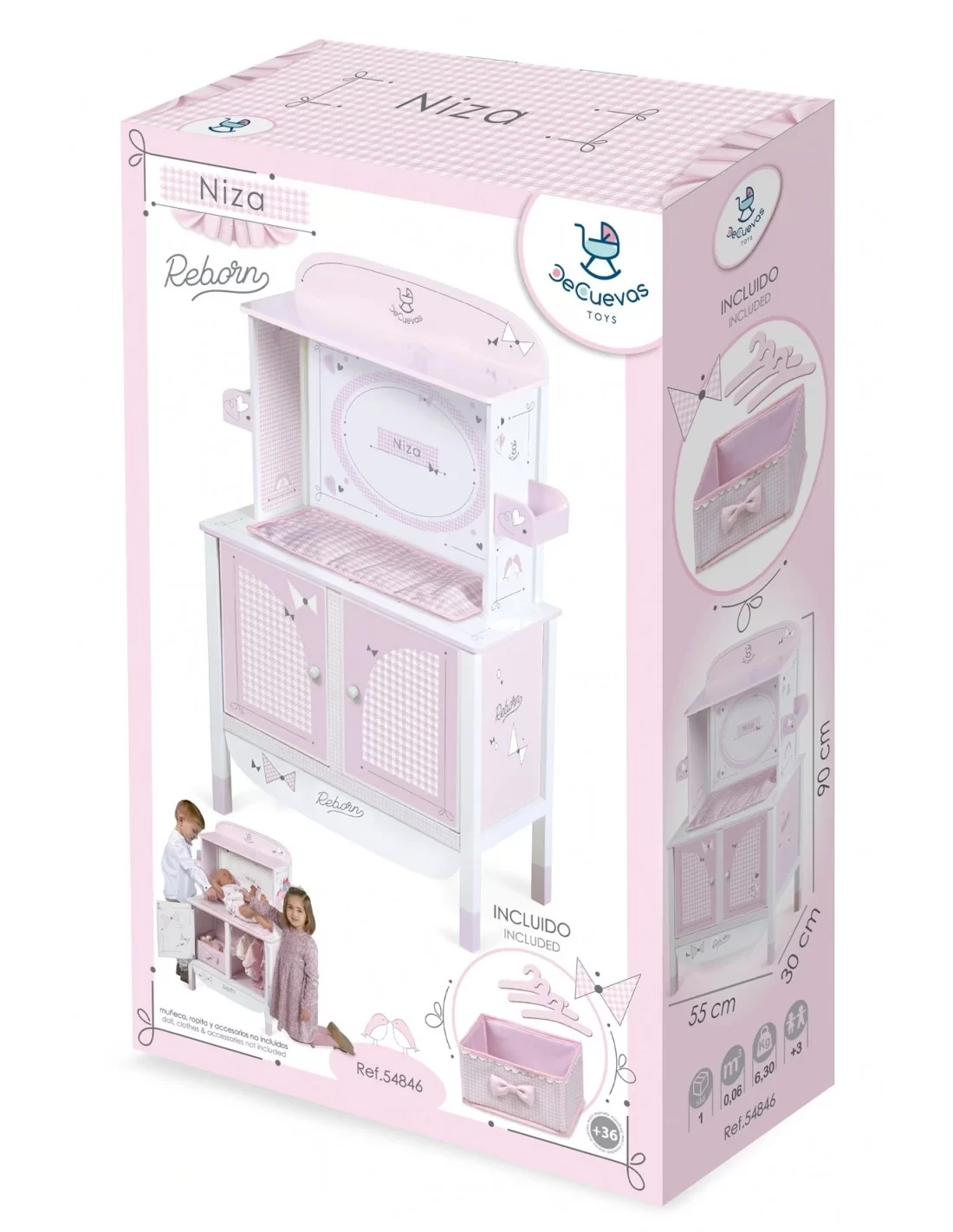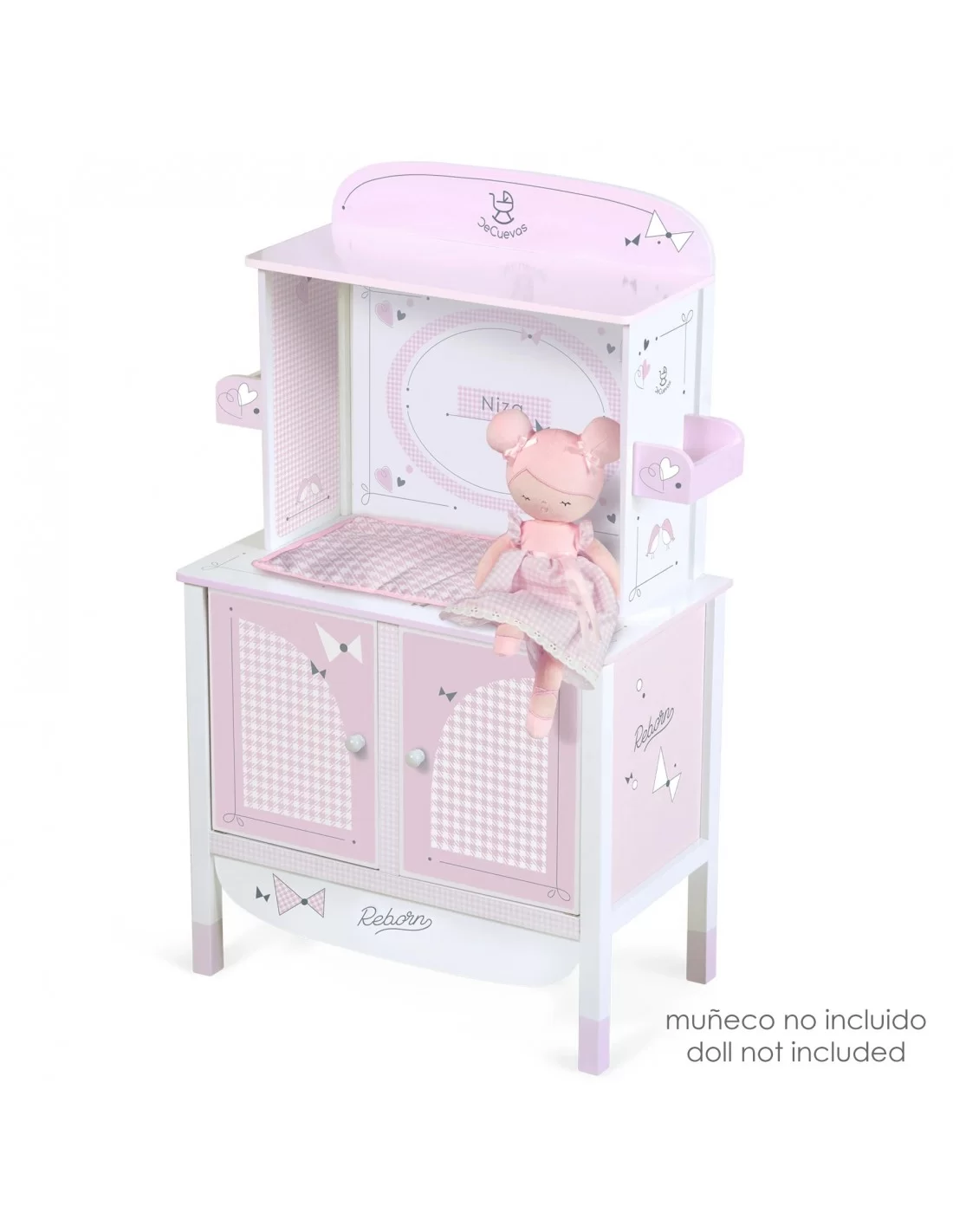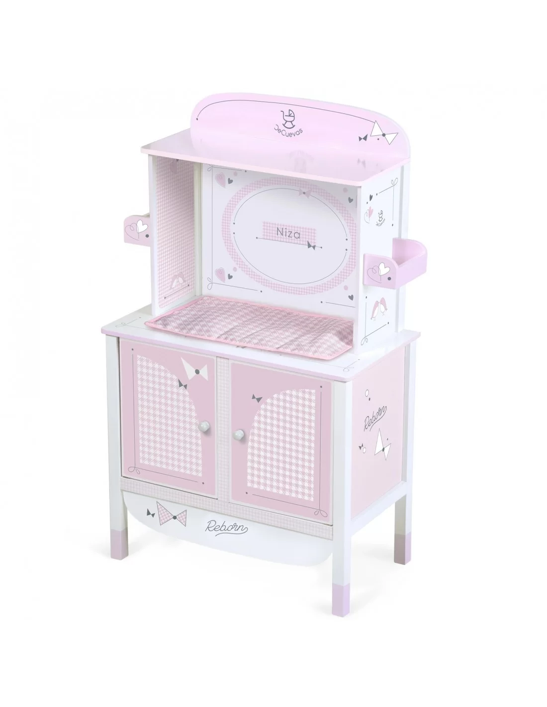 Complete the children's room with this elegant and beautiful DeCuevas Nice Wooden Changing Table , a great piece of toy, ideal for imitation play at home. A quality wooden changing table, with several play spaces, to carry out care tasks for the little ones' baby doll.