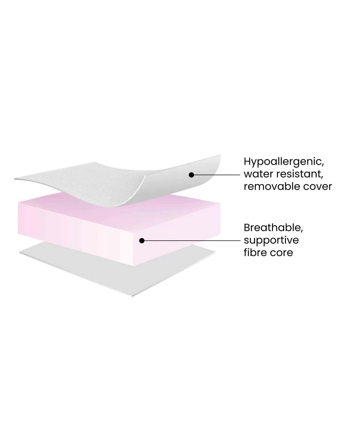 The Fibre Mattress comes with a supportive fibre core to ensure baby has a firm but comfortable sleep.