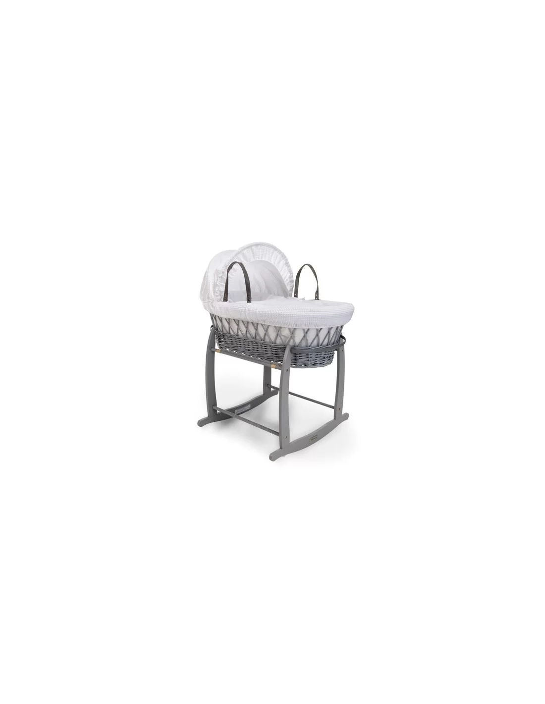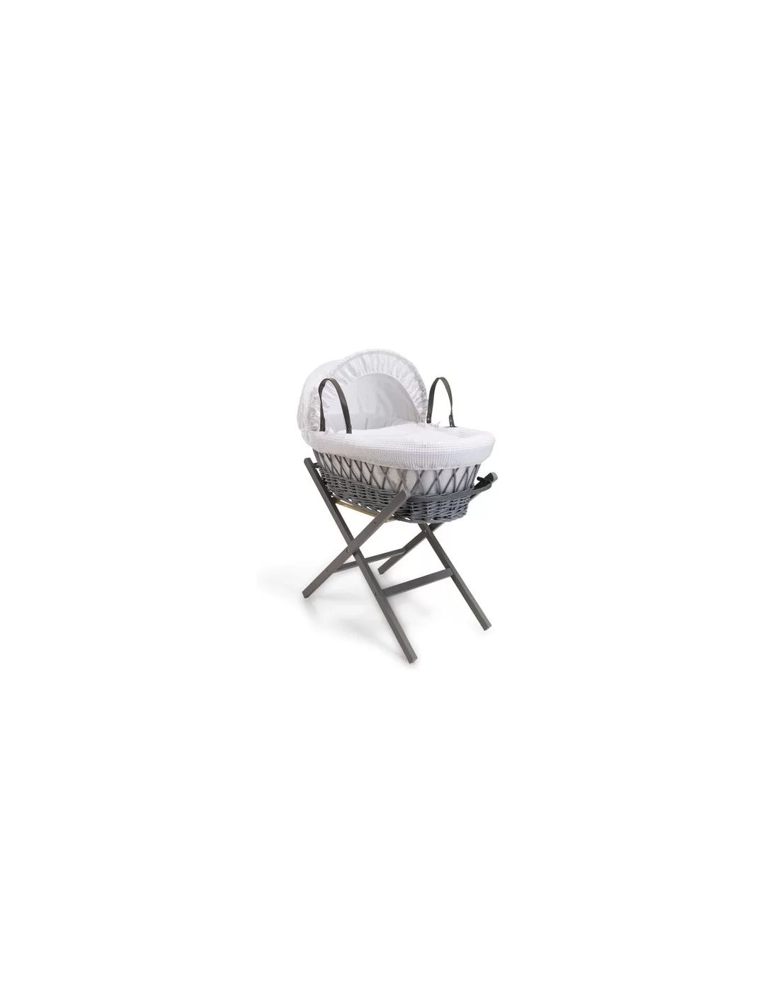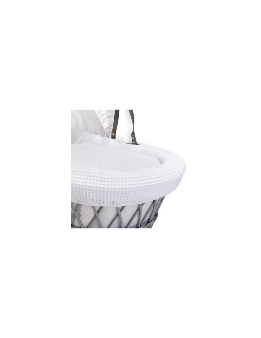 Clair de Lune Waffle Grey Wicker Moses Basket-White