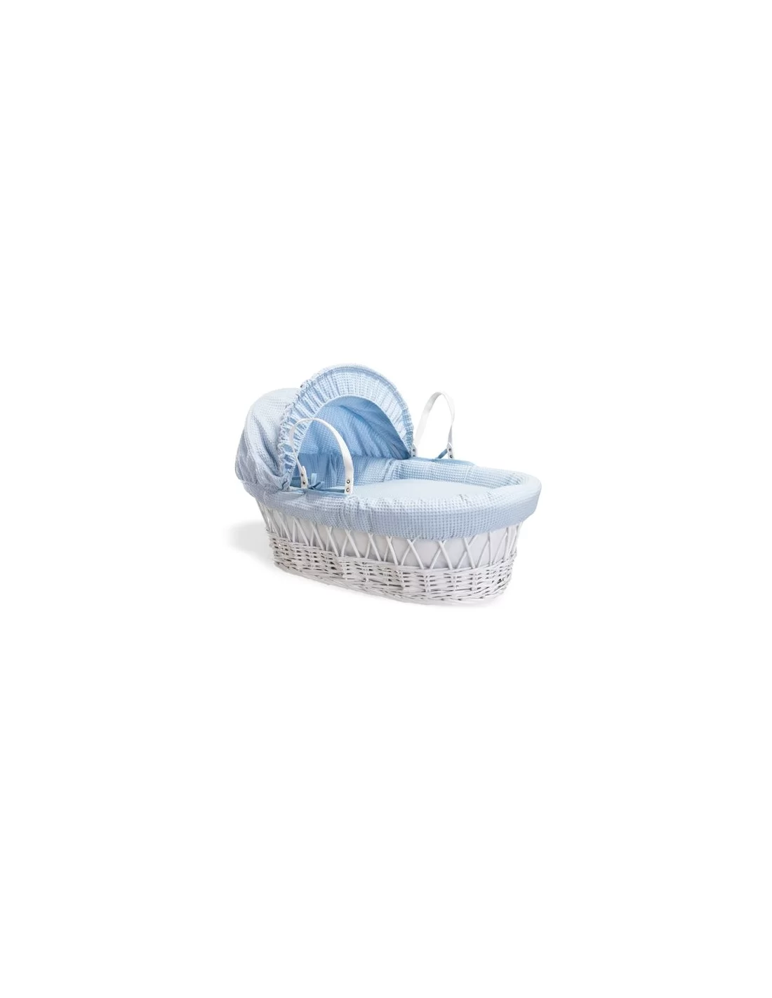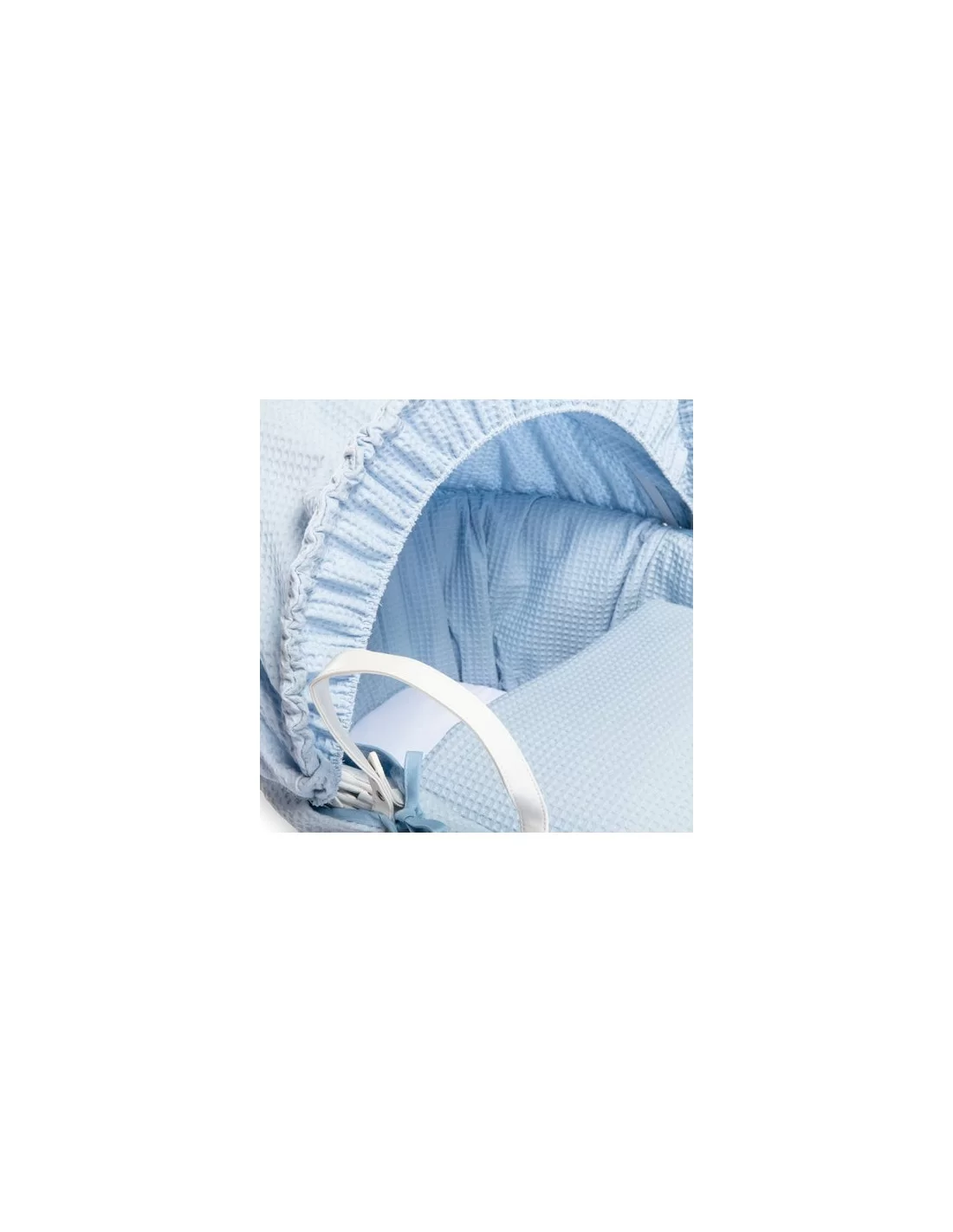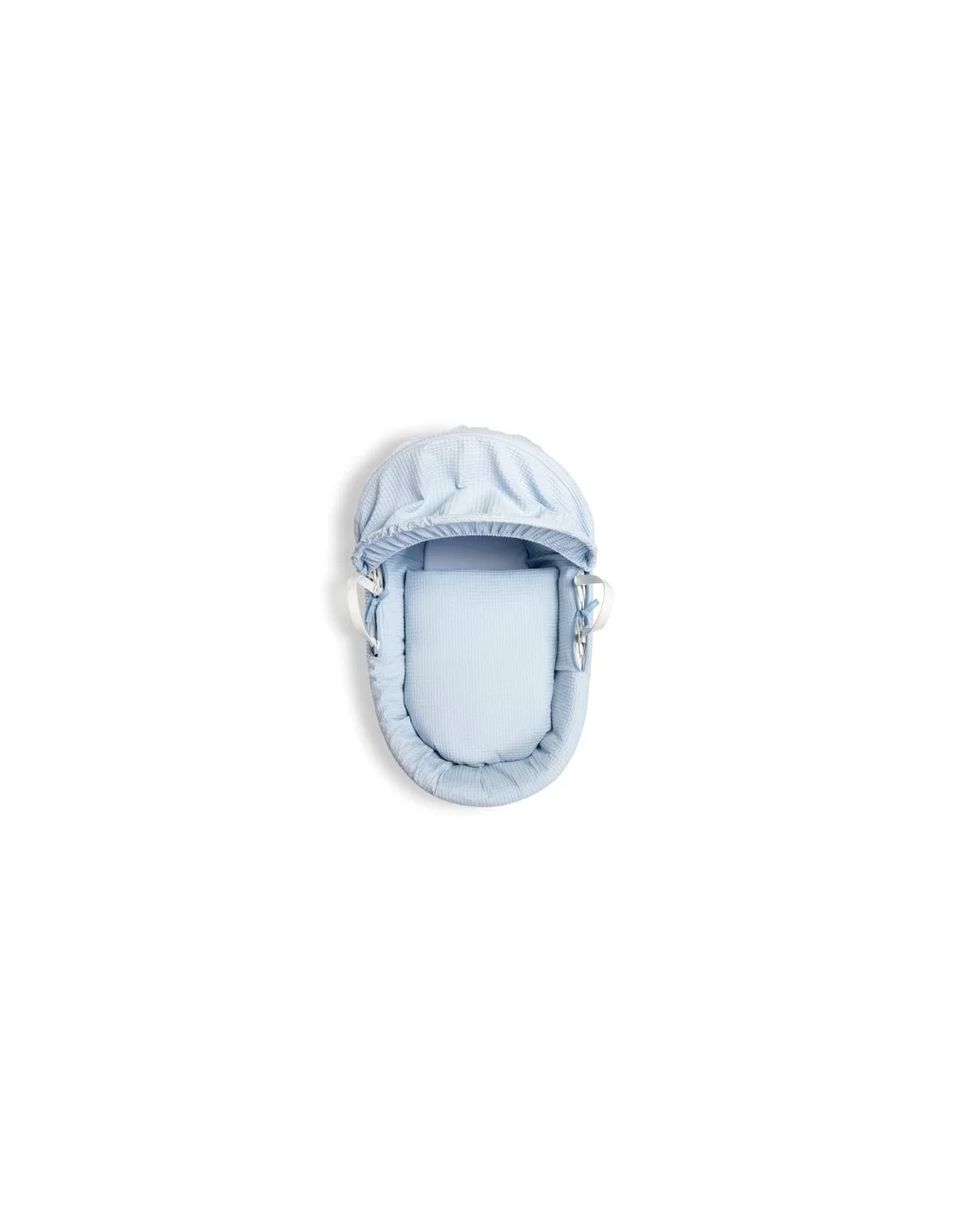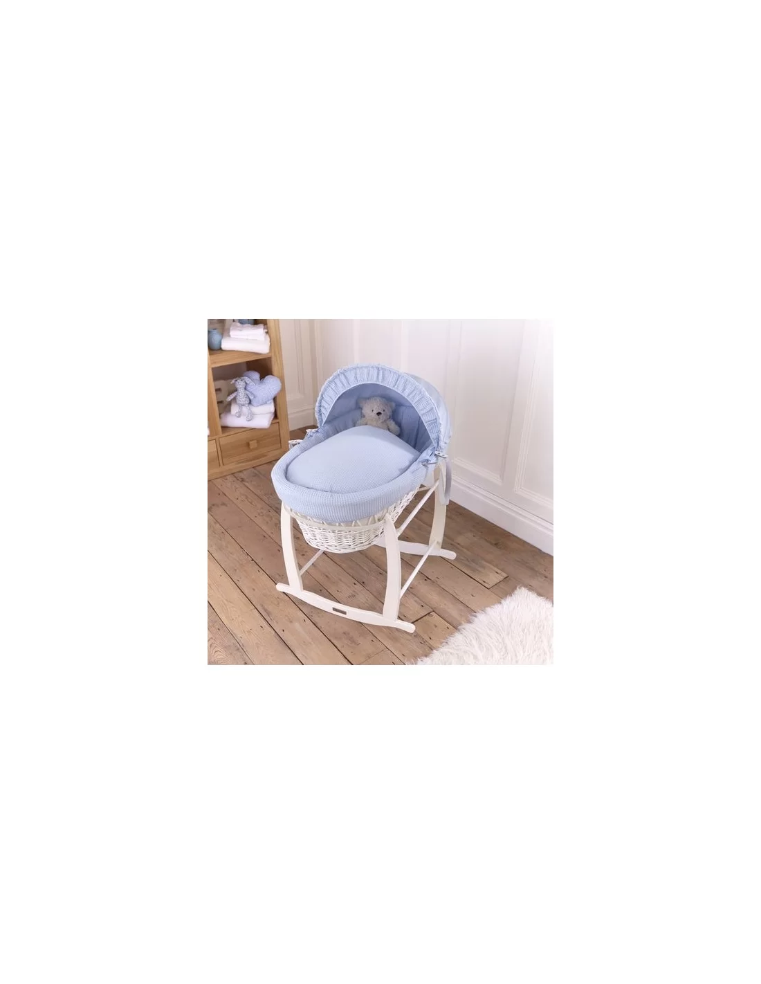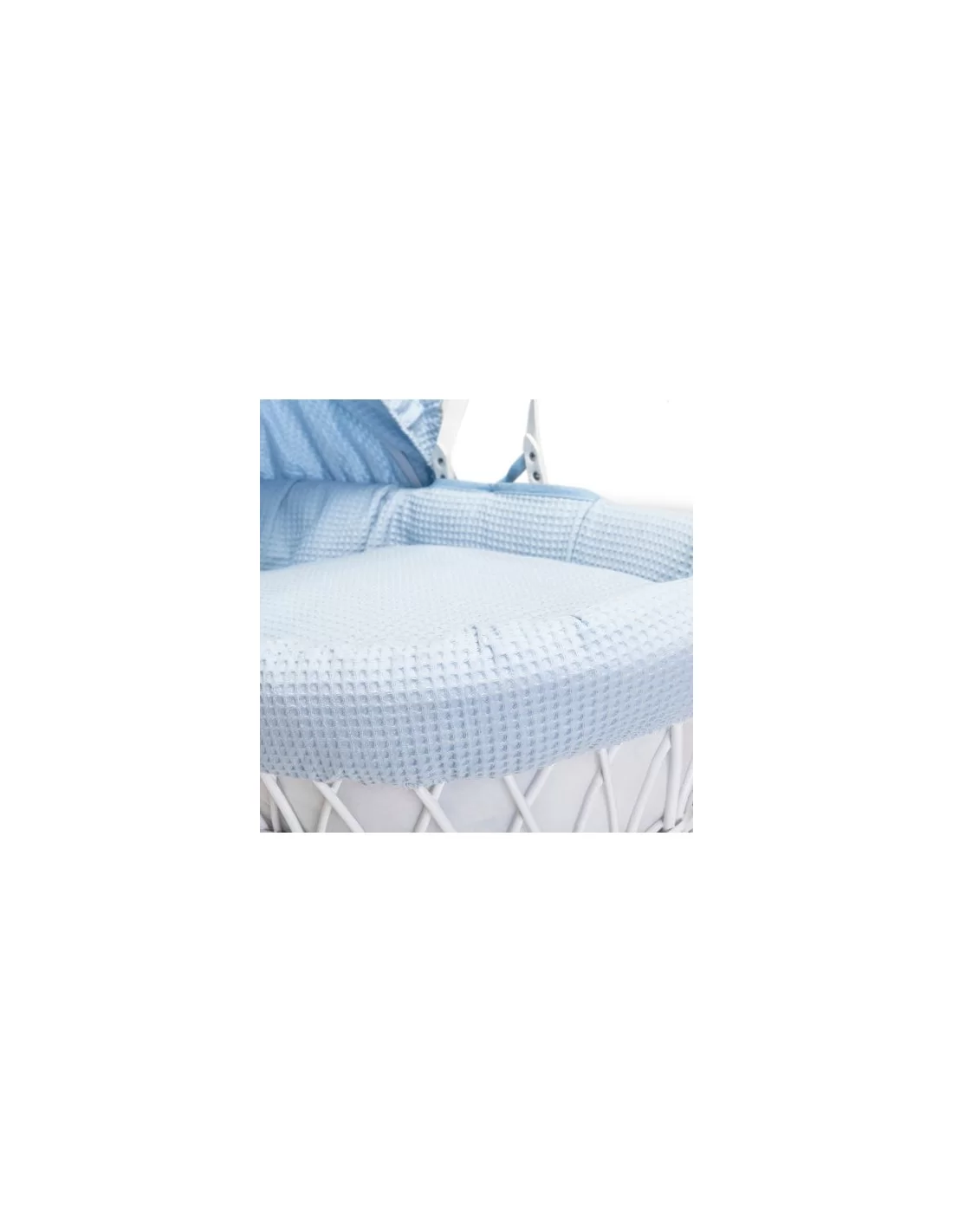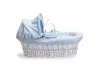 Clair de Lune Waffle White Wicker Moses Basket-Blue