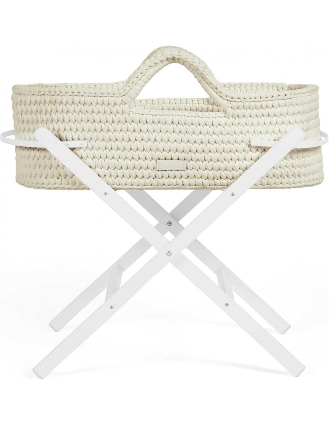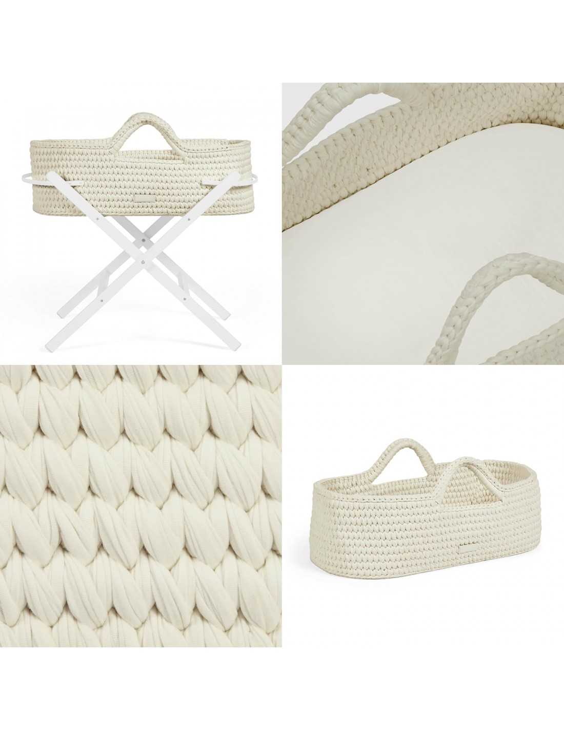 Ickle Bubba Nova Crochet Moses Basket & Foldable Stand-White/Cloud