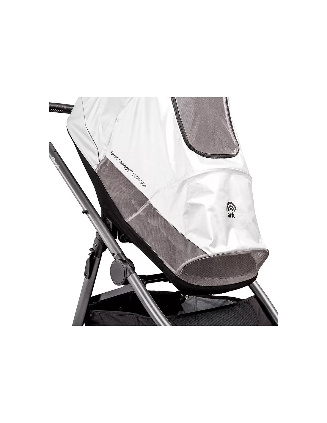 The Bliss Canopy from Ark will provide protection from heat and dangerous UVA and UVB rays for your baby when out and about in their pushchair and dim the light to help baby sleep soundly.