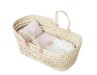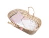 The Floral Palm Moses Basket, a charming carrycot made from natural palm, beautifully decorated with a delightful floral and gingham print that adds a touch of vintage style.