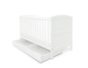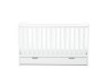 The Coleby cot bed is it the perfect solution for parents searching for a stylish and practical piece to furnish little one’s first room. Its traditional design has some great key features, and the included under drawer also offers a handy storage solution to keep little one’s essentials close at hand. The cot bed has open slatted sides that are perfect for watching over your baby during their most peaceful times, and the presence of teething rails ensures your child’s delicate teeth are protected. The top position of the mattress base allows your baby to be taken in and out of the cot bed without any unnecessary bending, from birth to approximately 6 months. Whilst they’re learning to sit and stand, the mattress base can then be lowered by a further two positions, providing extra security and reassurance. Once your little one is ready to progress to a bed, the Coleby cot bed can then convert seamlessly into a stylish junior bed, suitable for a child up to approximately four years old.