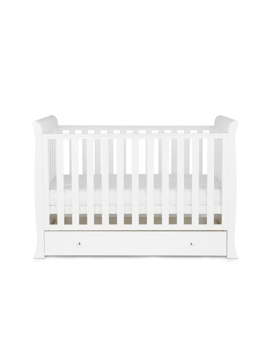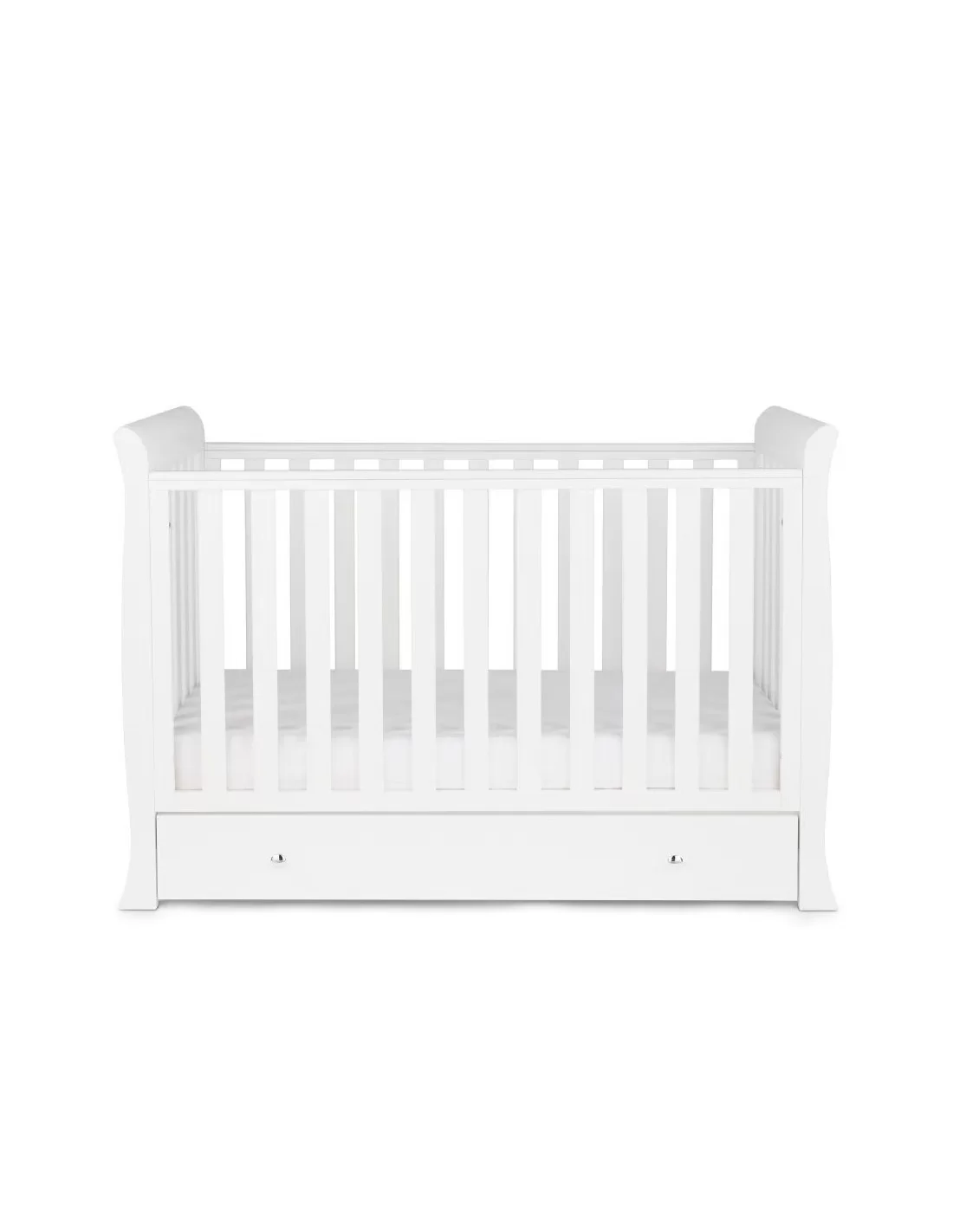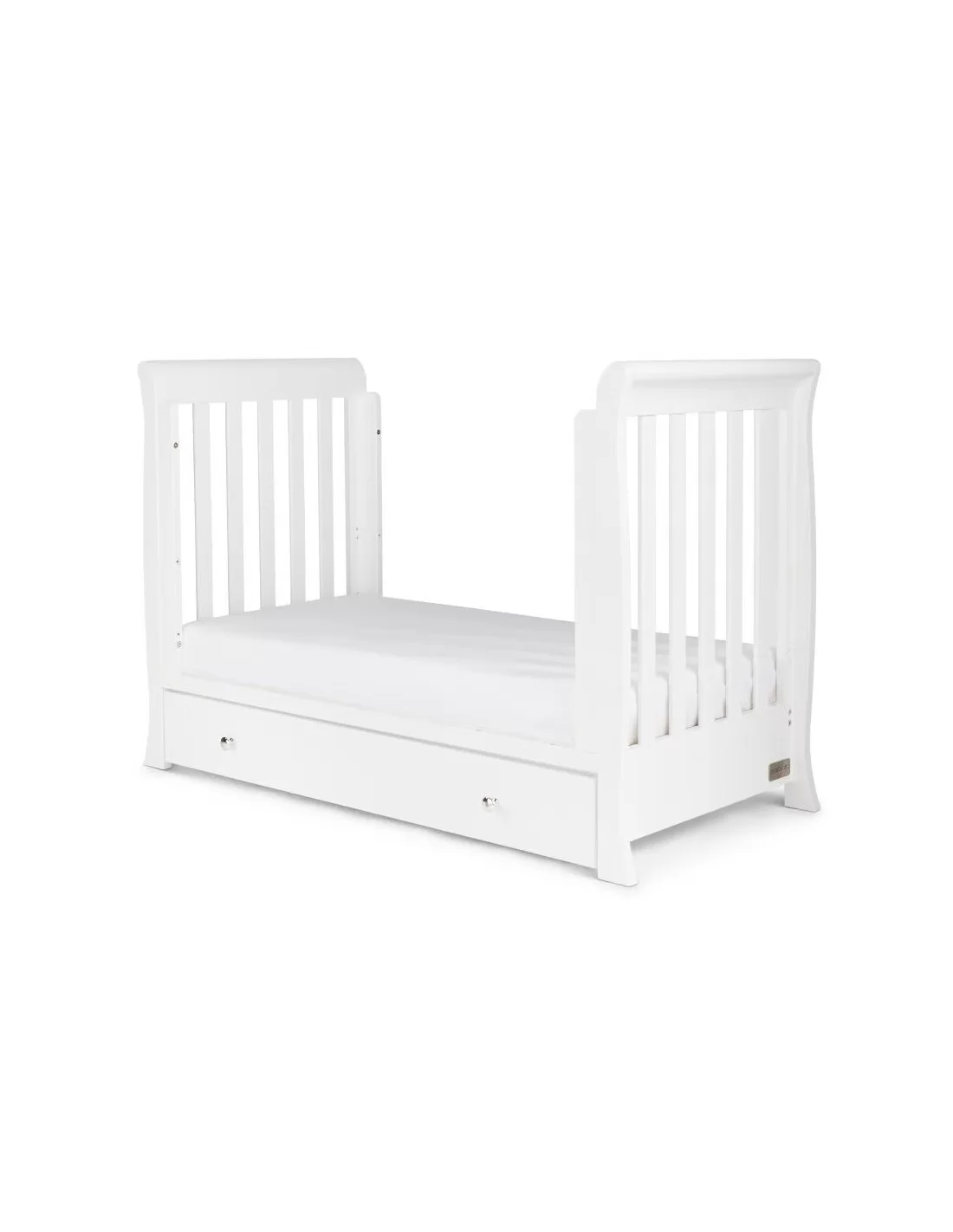 The Snowdon 4 in 1 Mini Cot Bed has open slatted sides that are great for watching over your little one as they rest and includes teething rails to protect your child. Designed with three height positions, the top position is ideal for your baby to be taken in and out of the cot bed, without any unnecessary bending and is suitable from birth to approximately 6 months. When your baby is learning to sit and stand, the mattress base can then be lowered by a further two positions, providing extra security and reassurance. Once your little one is ready to progress to a bed, the Snowdon 4 in 1 Mini Cot Bed can convert easily into a stylish toddler Bed suitable for a child up to approximately four years old. The Toddler Rail mode gives the added reassurance during transition from cot to bed, and the Day Bed mode offers maximum longevity and great value. The mini cot bed includes your choice of 120 x 60cm mattress. The matching Under Drawer ensures maximum capacity for storing baby’s essentials and comes complete on runners and with elegant handles for simple access. The stylish Changing Unit features a changing station that allows you to comfortably change and dress your baby and can accommodate a changing mat up to 76cm x 46cm. Three deep drawers ensure that all your baby’s essentials are within easy reach, where you need them, and feature the same elegant handles to match the rest of the Snowdon collection.