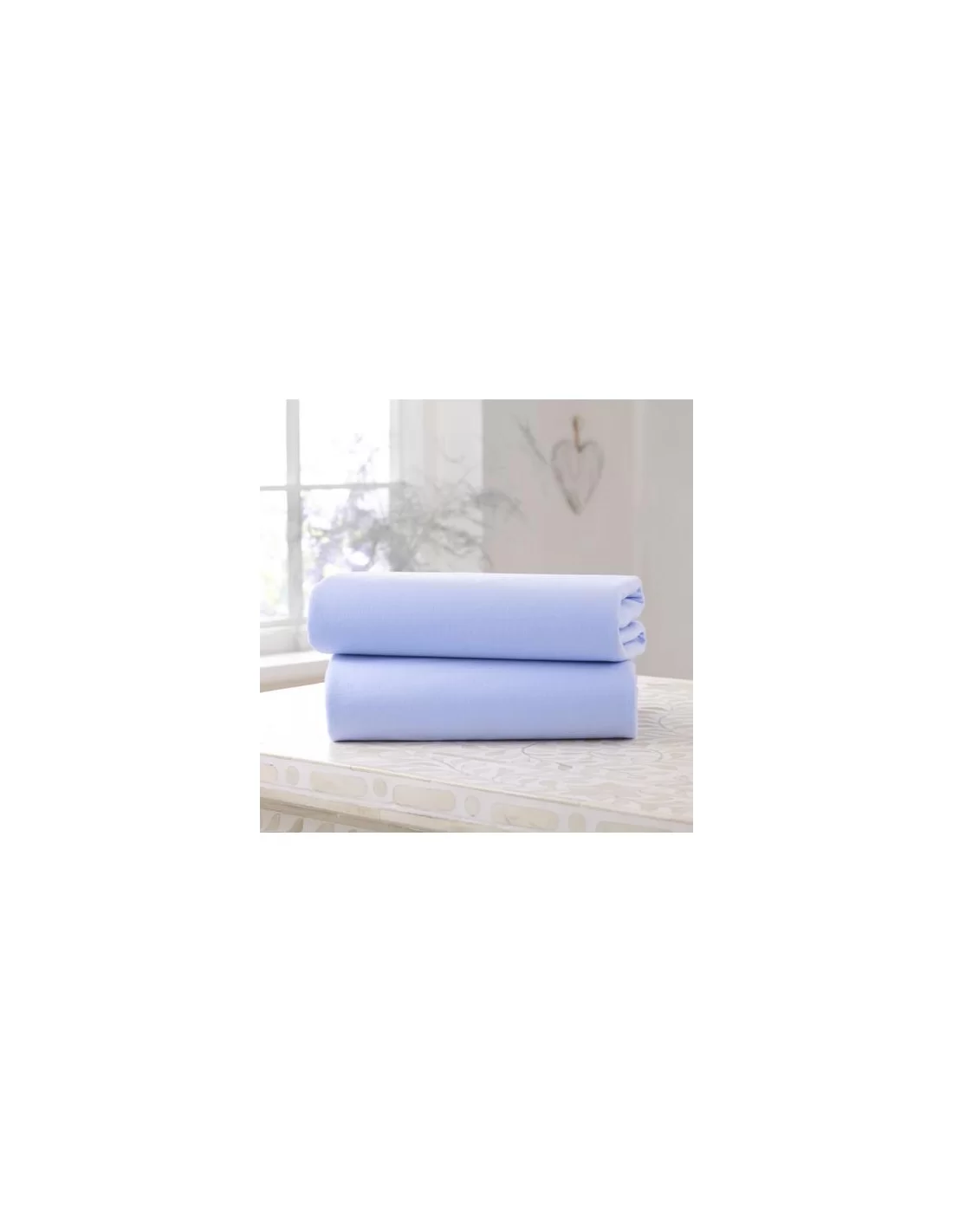 Clair de Lune 2 Pack Cotton Fitted Pram/Crib Sheets - 90 x 40 cm-Blue