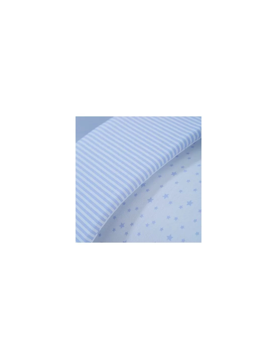 The sheets come in a pack of two and the soft, stretchy jersey cotton fabric is kind of next to your baby's delicate skin.The fitted sheets are made from soft cotton jersey. They have an elasticated edge so you can easily stretch and fit over any of our cot mattresses. The sheets come in a pack of two and the soft, stretchy jersey cotton fabric are kind next to your baby's delicate skin. These fitted sheets feature a star pattern on one sheet and stripes on the other, with soft textures that are kind next to your baby's delicate skin.
